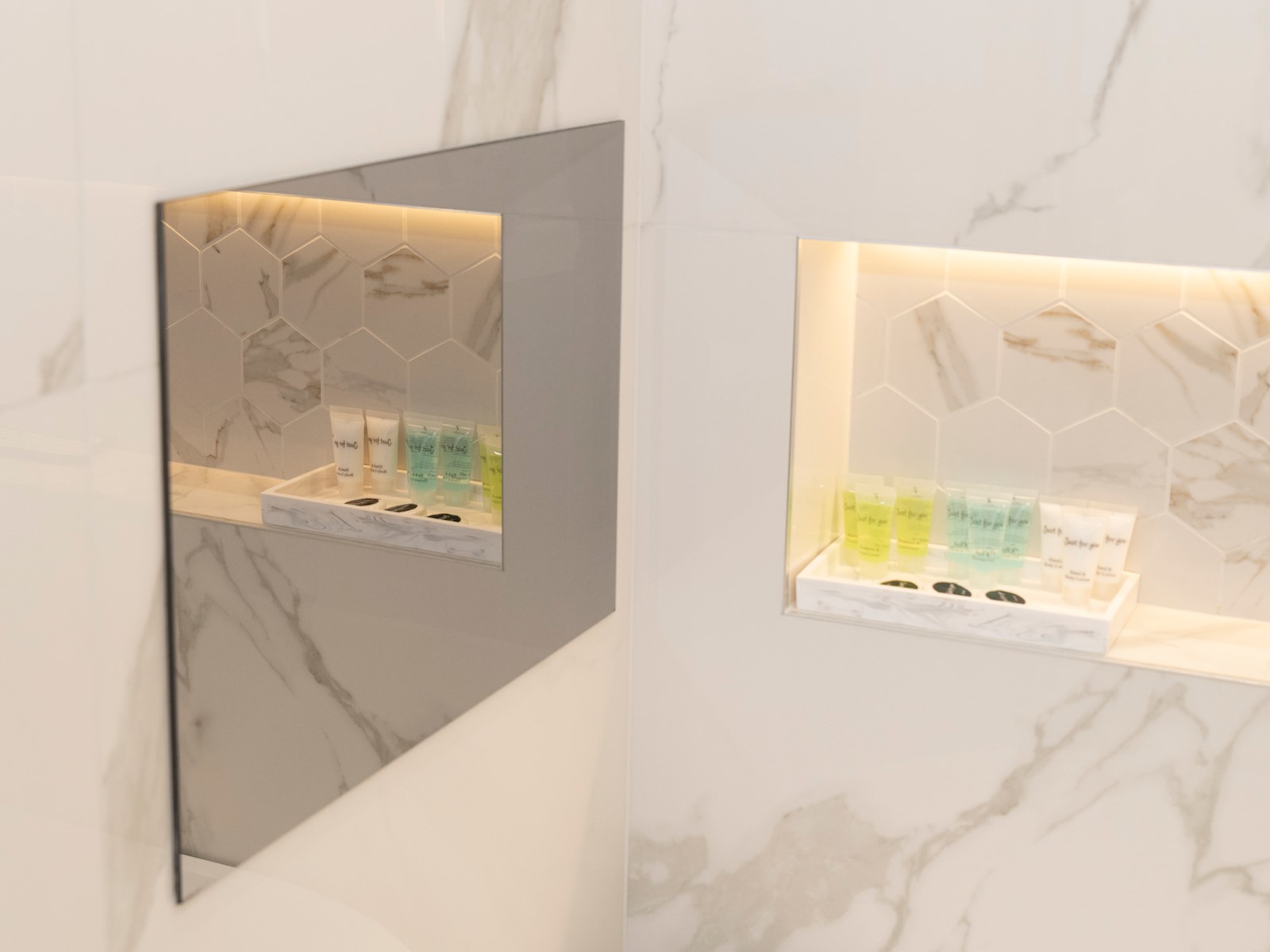 – Ambient lighting, built-in shelves, and a seamless, modern design that elevates the bathing experience.
