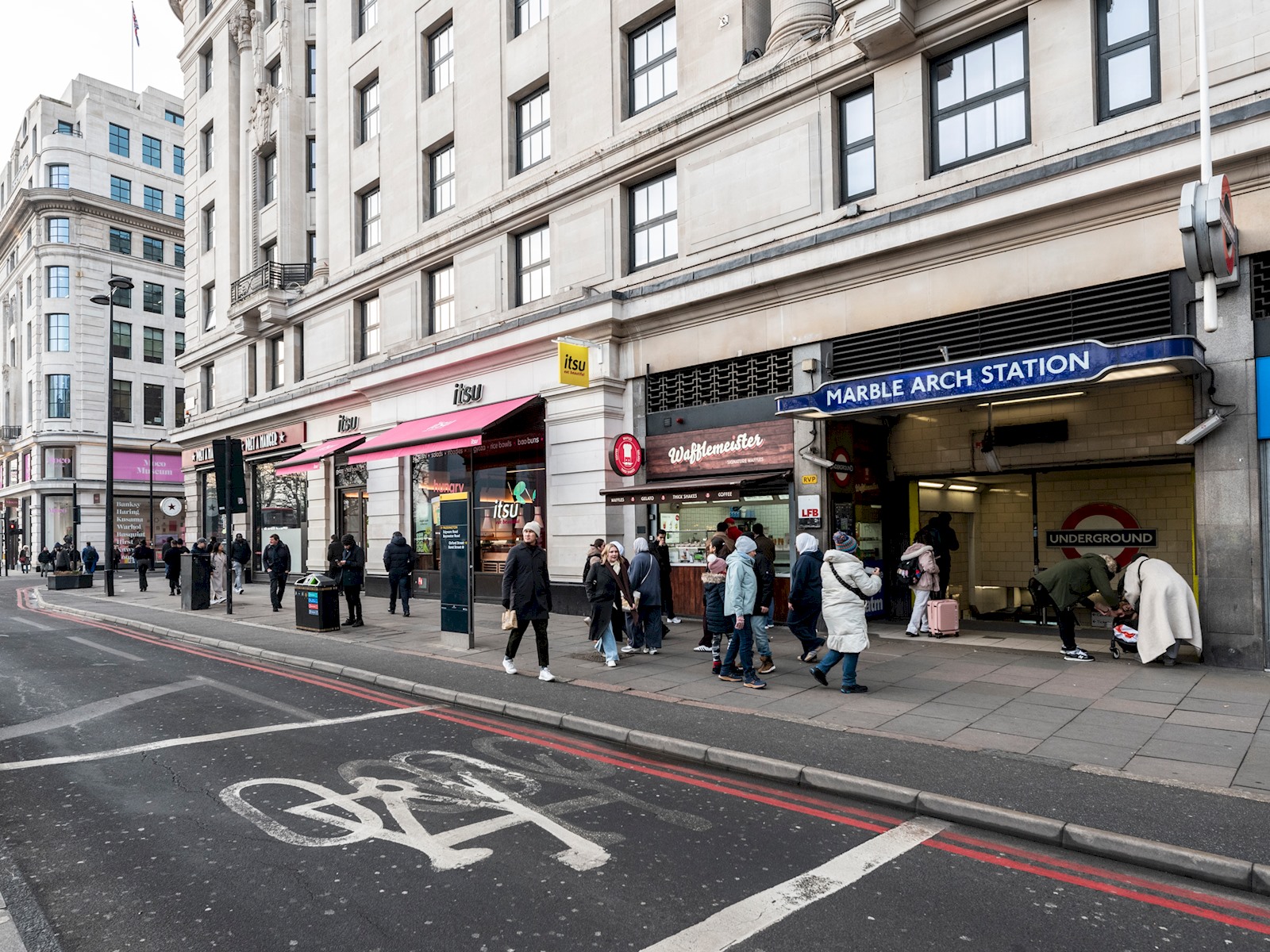 A short ride to London’s bustling shopping district with flagship stores and vibrant energy.