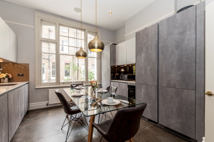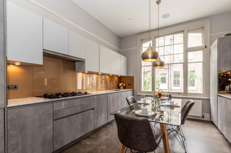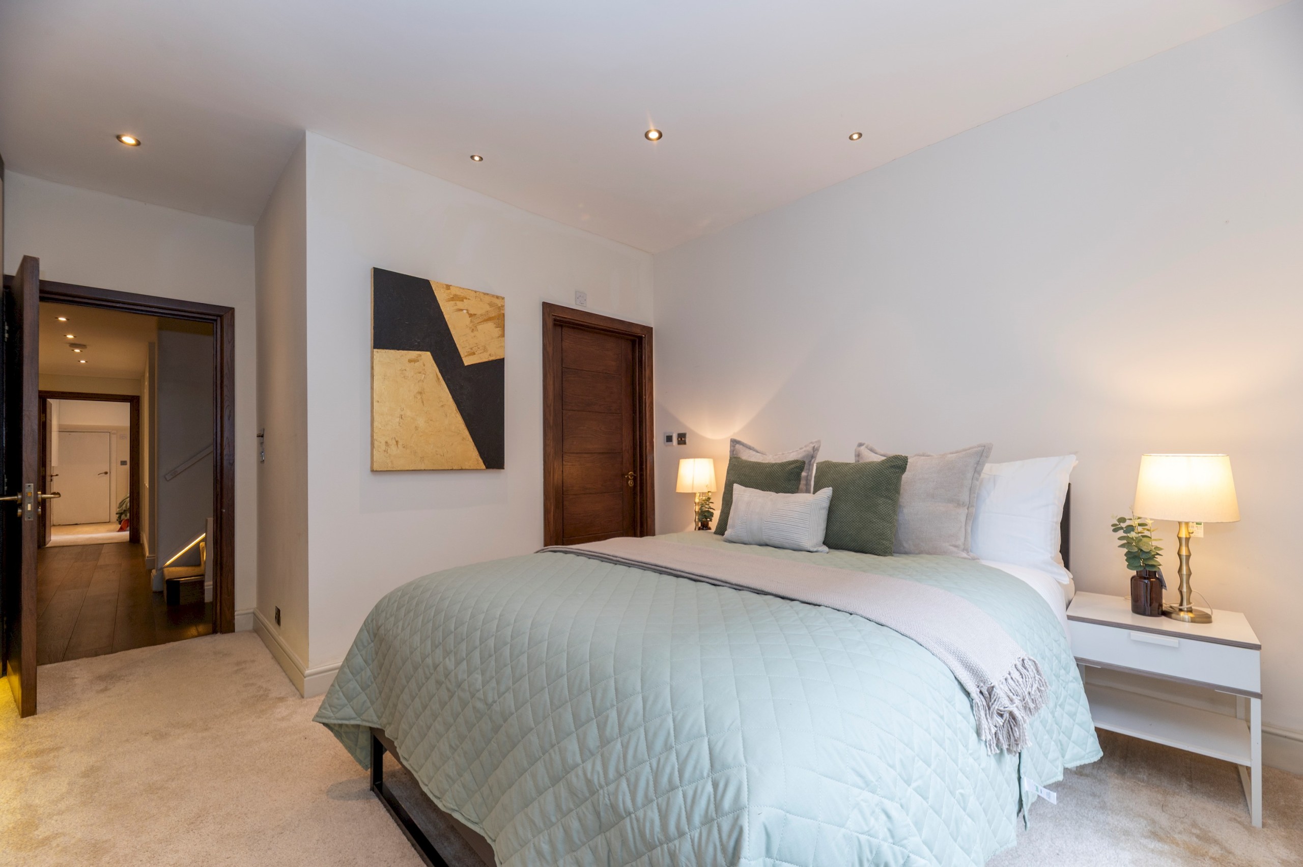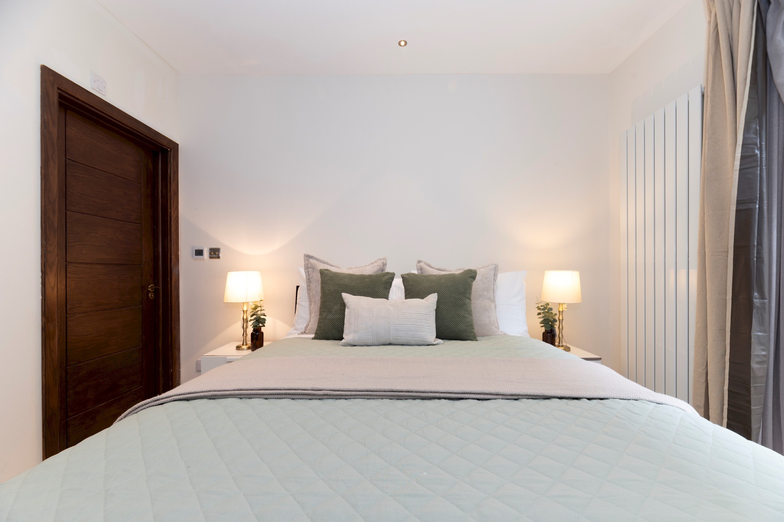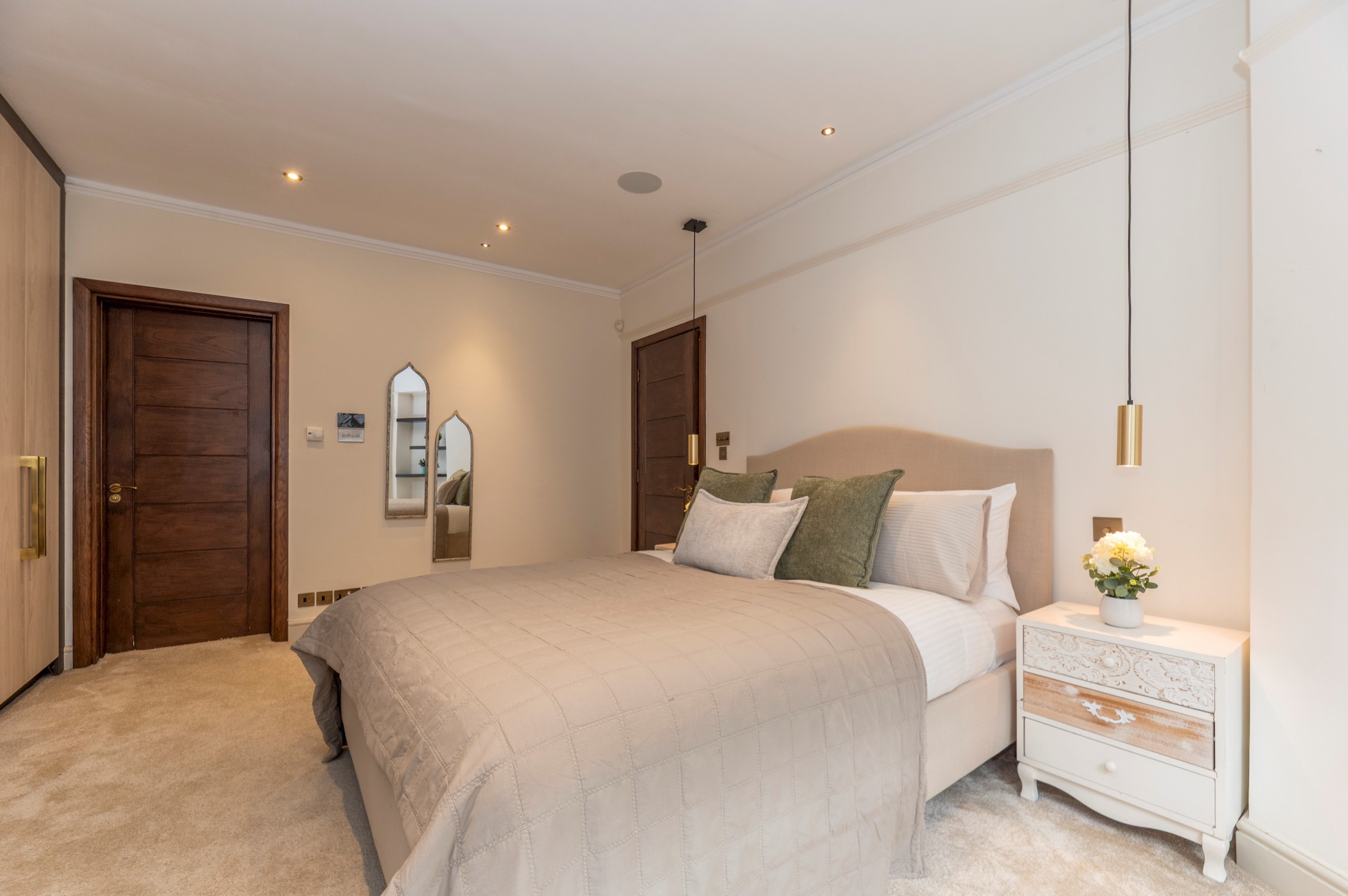 Welcome to this beautifully designed 3-bedroom, 3.5-bathroom home in West Kensington. Set across the ground floor and basement, it features a private garden and spacious layout. Just 3-5 minutes to Barons Court and West Kensington stations, and 2 minutes to the famous Queen’s Tennis Club. Enjoy en-suite bedrooms, underfloor heating, ceiling speakers and a fully equipped kitchen. Ideal for families or groups, with quick access to Central London and 20–30 minutes to Heathrow.