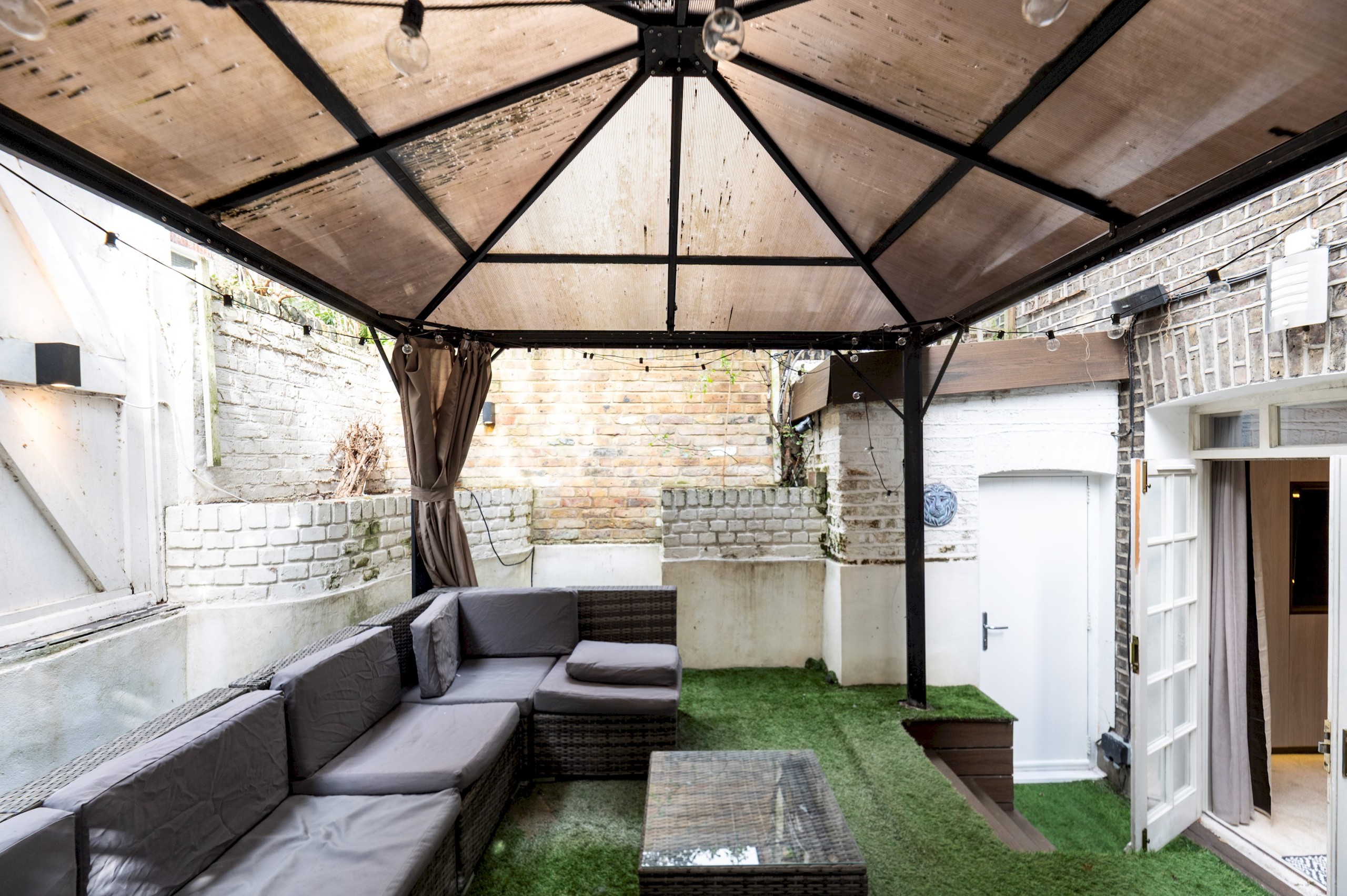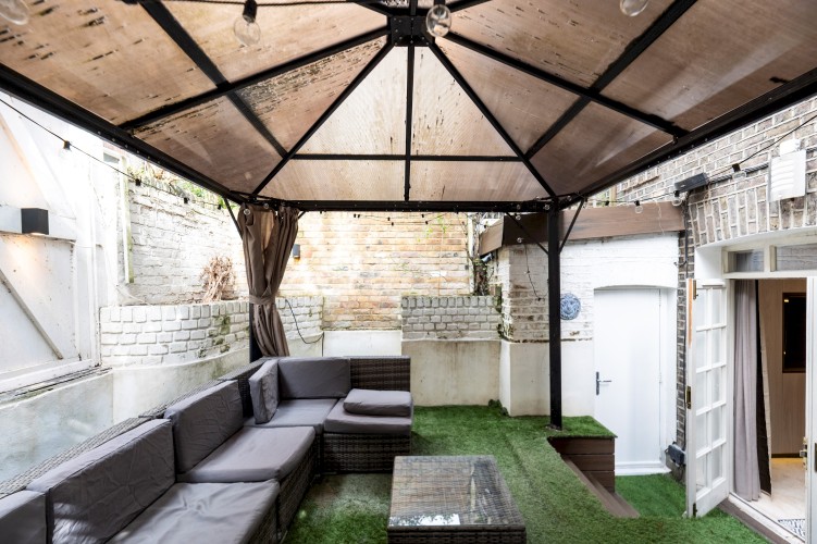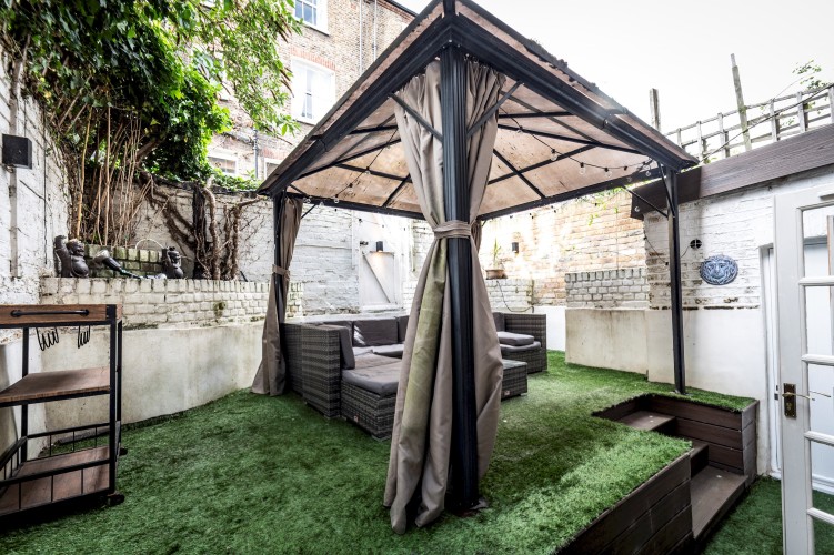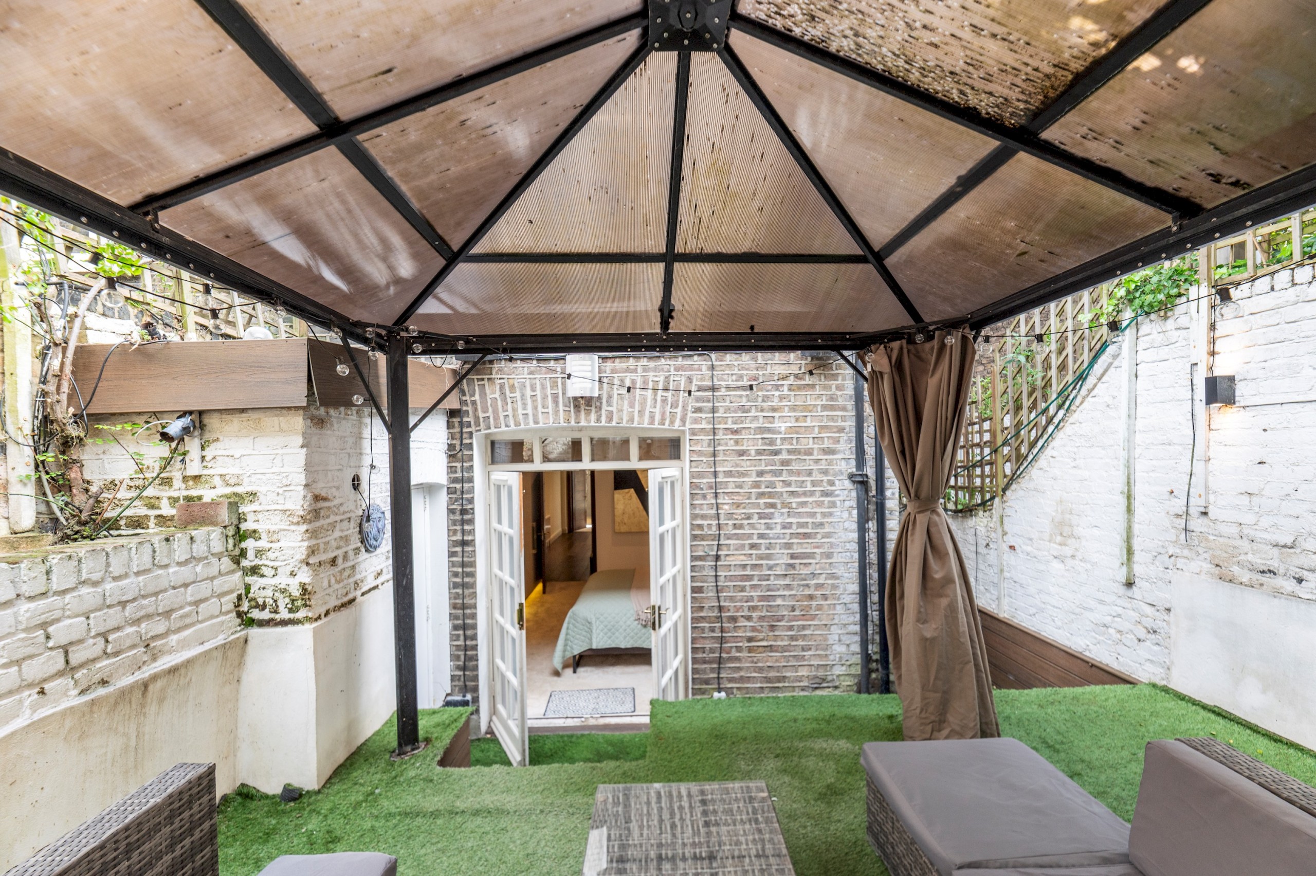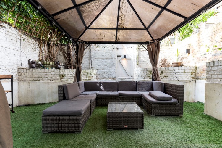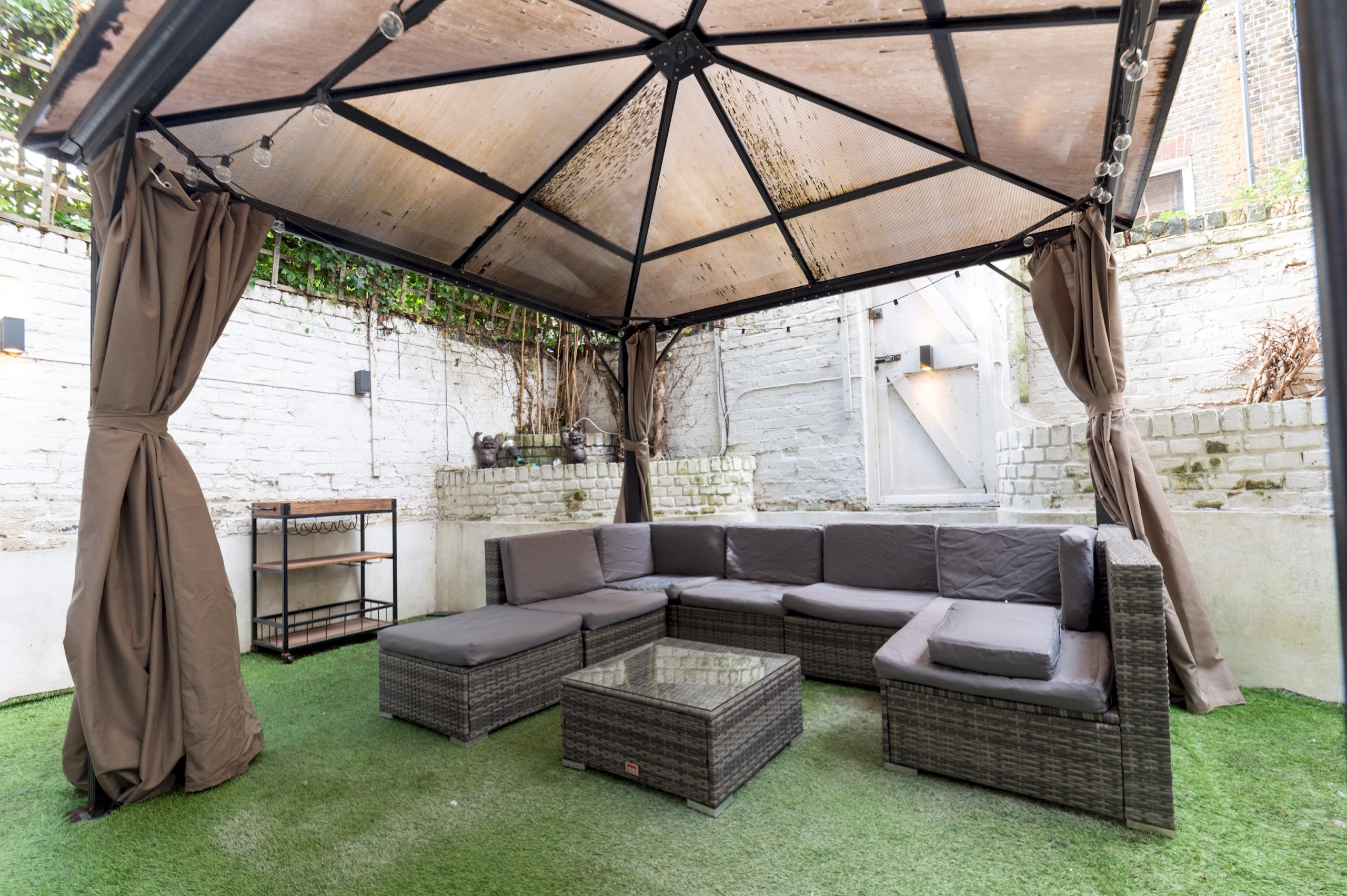 Step outside into a private garden designed for relaxation. The space includes a comfortable seating area under a gazebo, perfect for unwinding, socialising, or enjoying a quiet morning coffee