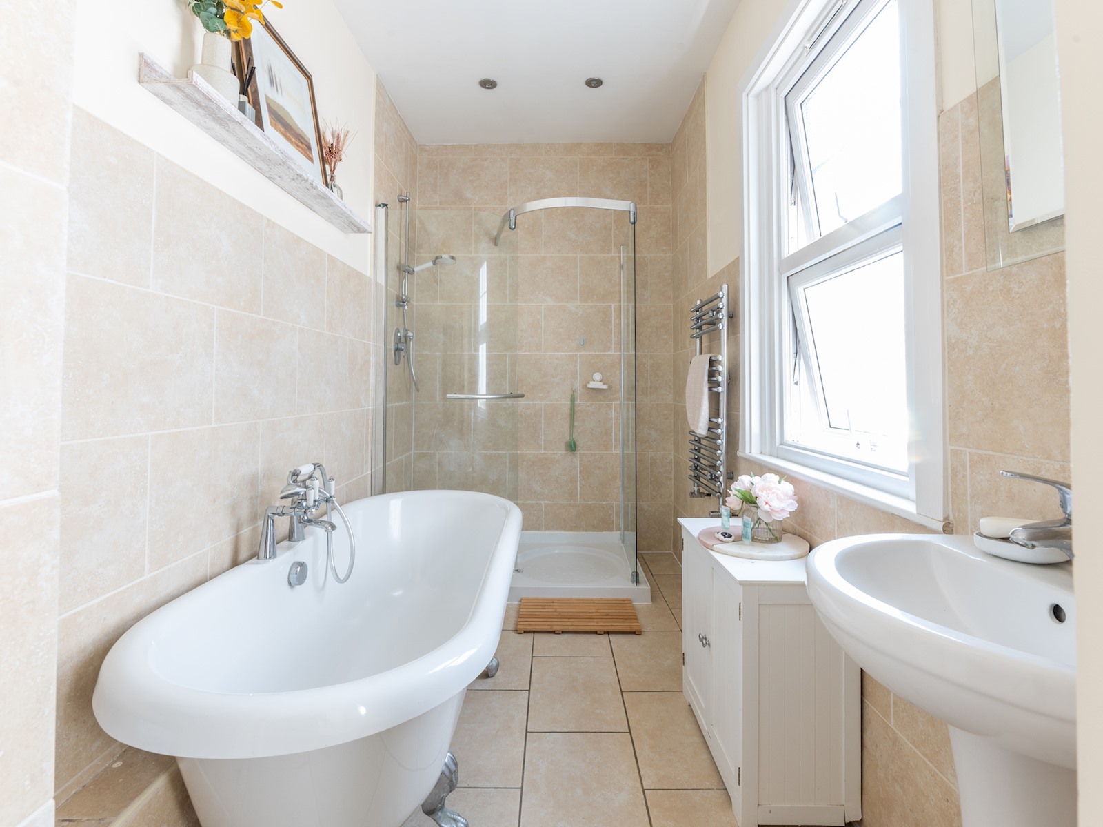 💦 Hot water: On-demand combi boiler + electric shower in loft