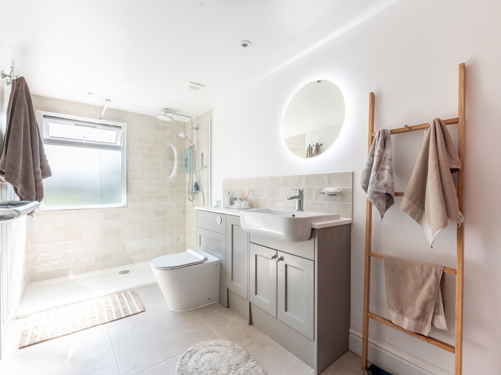 🚿 Loft ensuite with rainfall shower + LED mirror