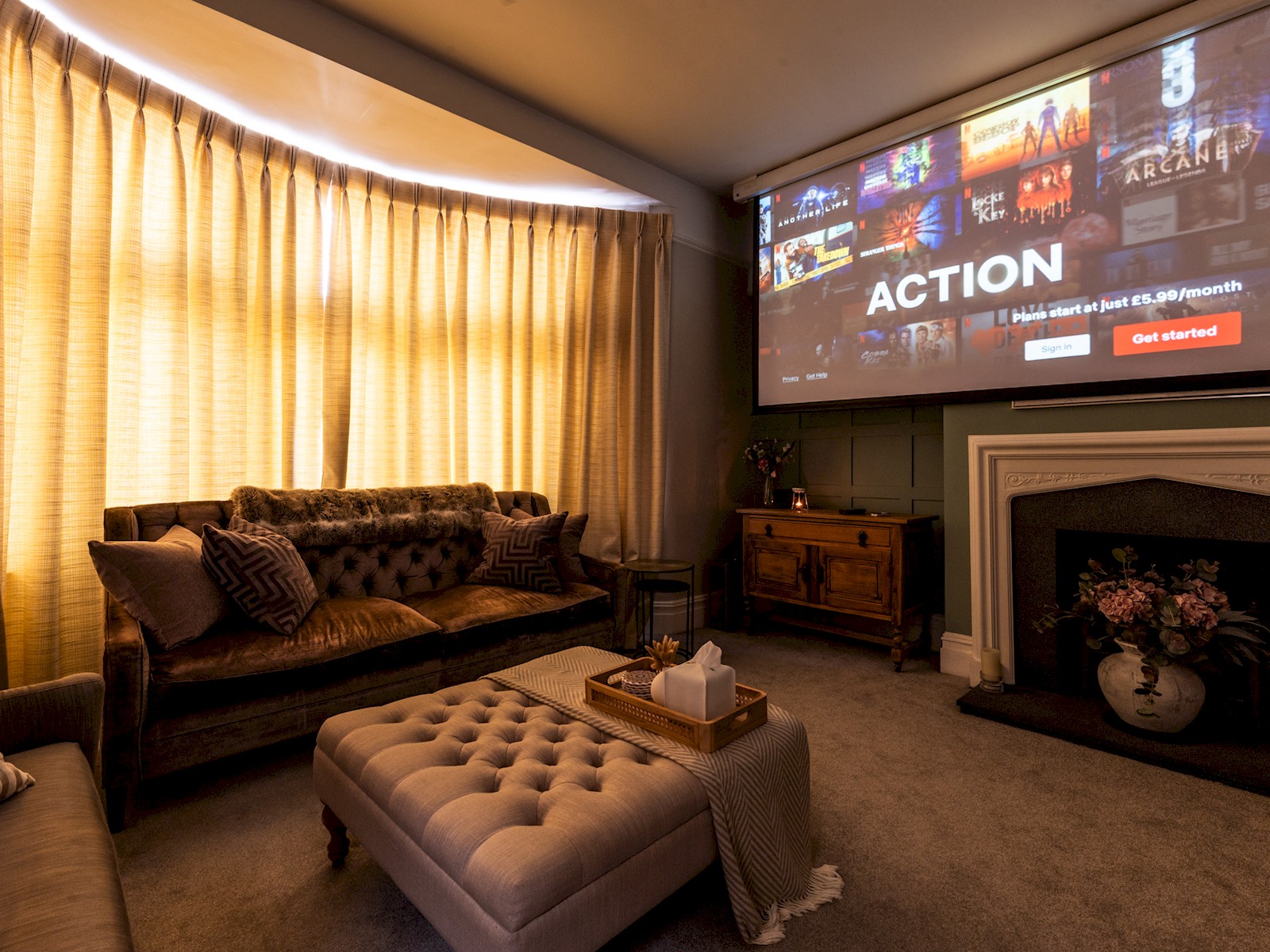 Enjoy your own private 🎬 cinema, 🎯 games room (air hockey, foosball, darts) and a 🌿 beautiful garden with outdoor dining & trampoline.