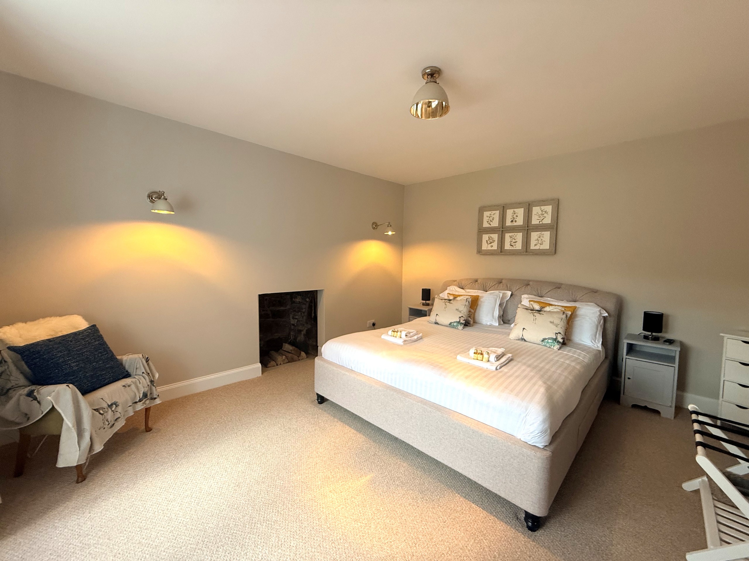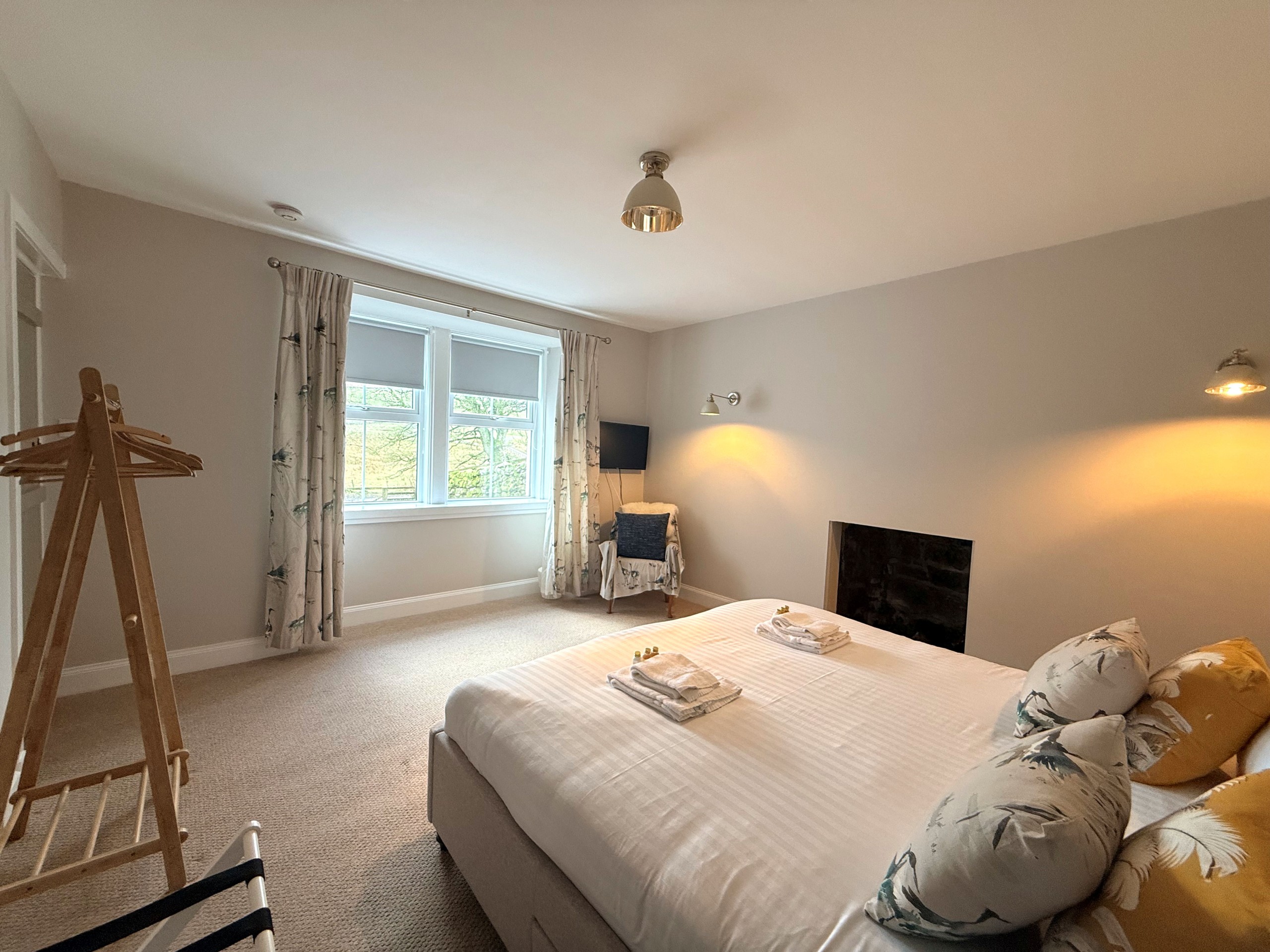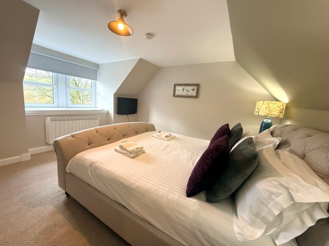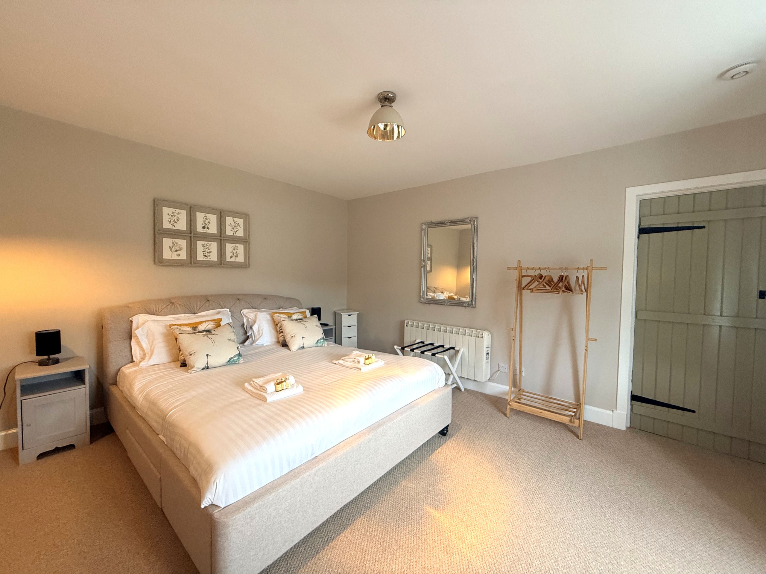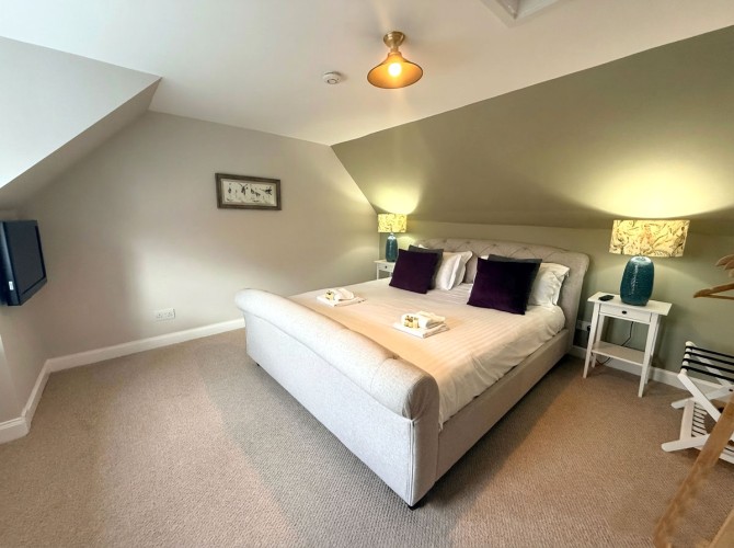 Another generously sized and beautifully styled bedroom featuring a Super King bed. This room also benefits from its own smart TV, offering comfort and privacy for a restful night’s sleep.