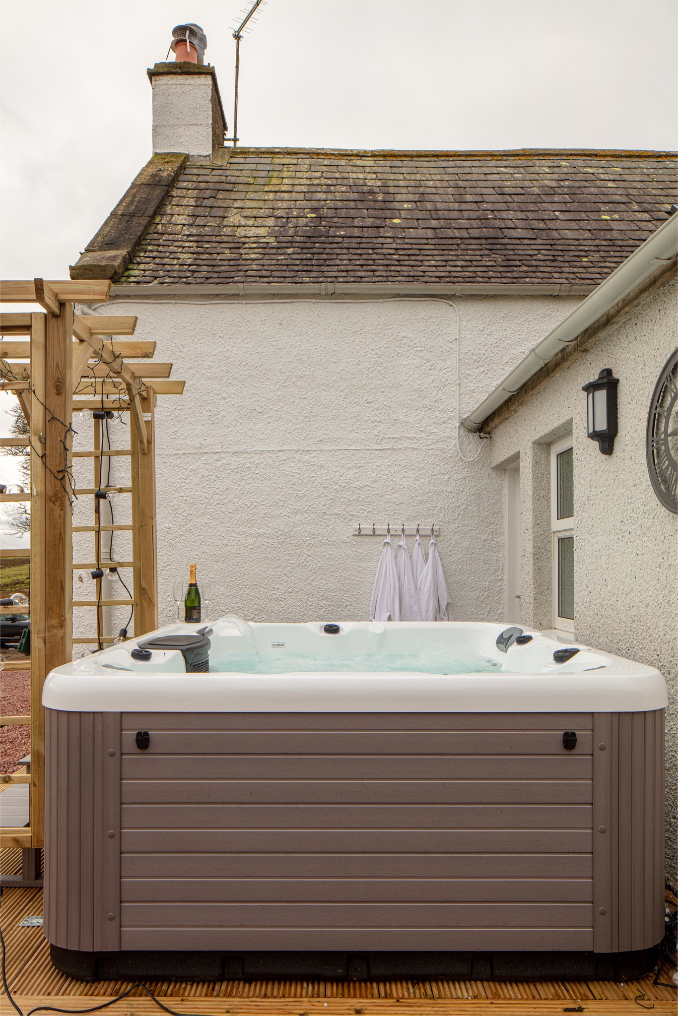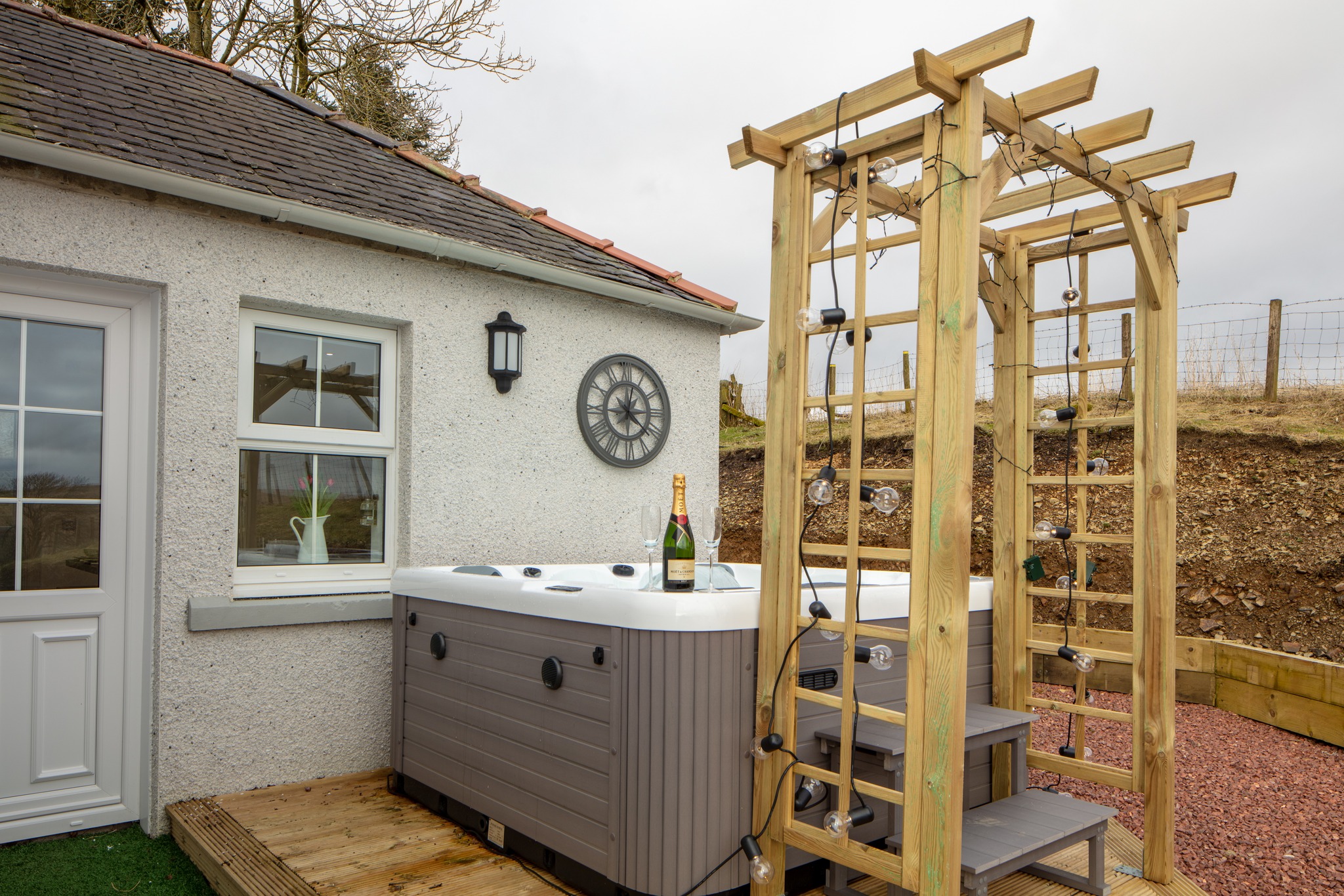 The private hot tub offers the ultimate indulgence, unwind under the stars, soak away the day’s stresses, and enjoy quiet, serene evenings with friends or family in complete comfort and privacy.