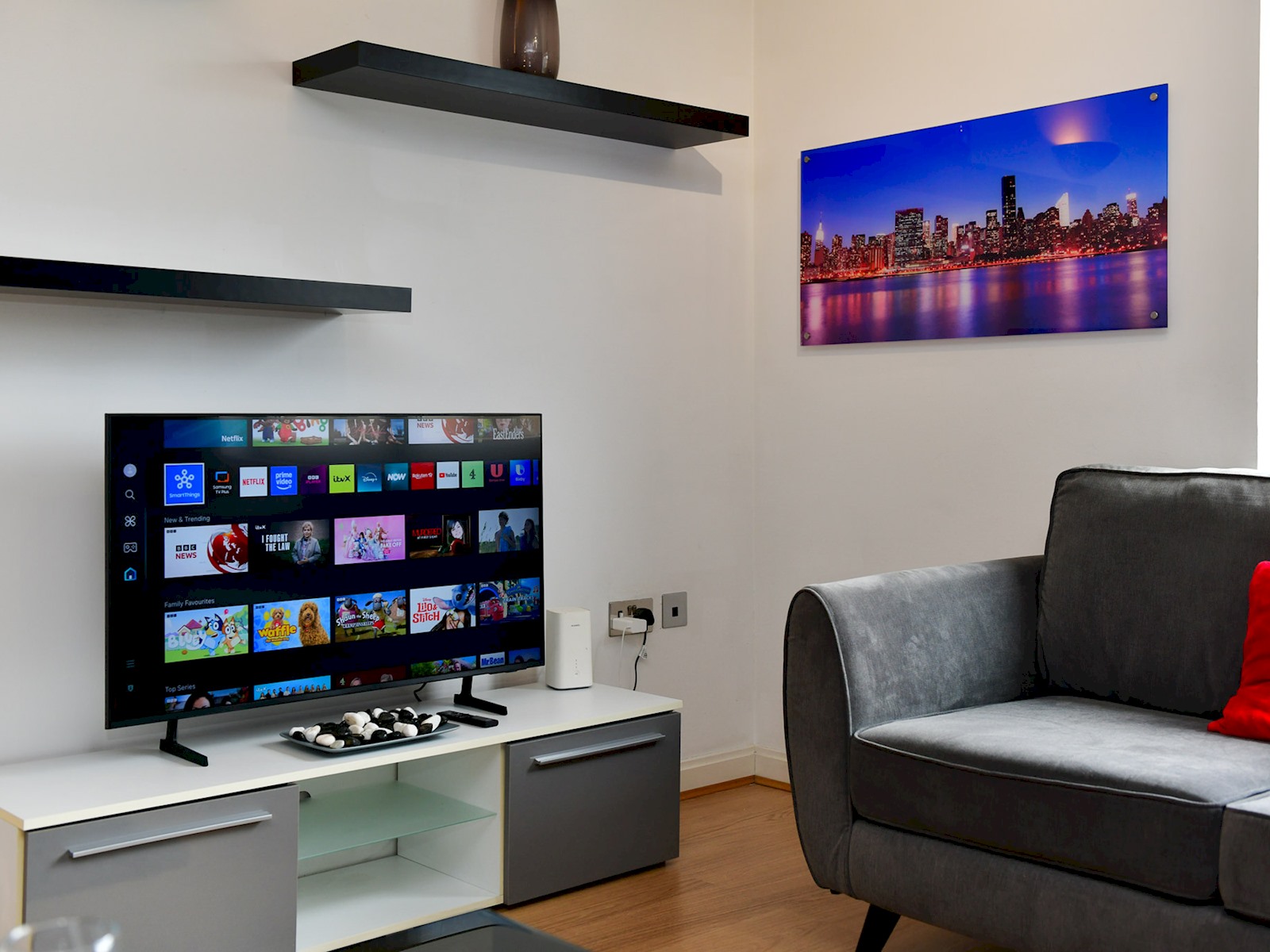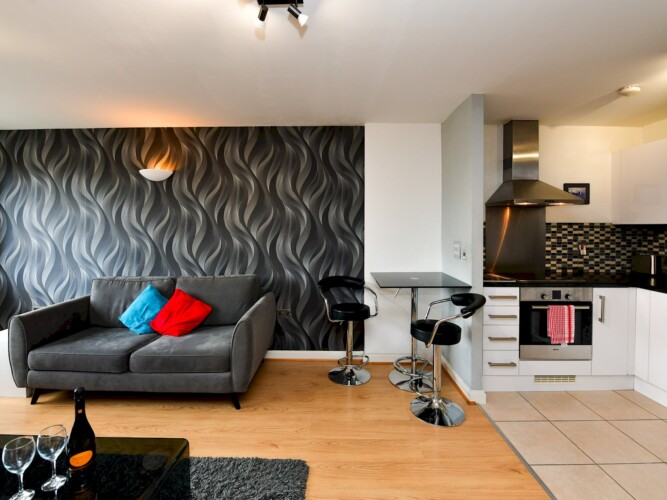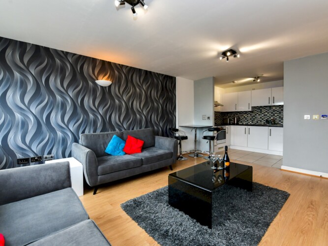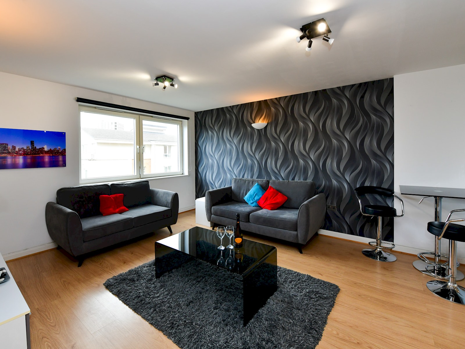 Welcome to our stylish 1-bedroom apartment in the desirable Century Wharf development, Cardiff. Perfect for couples, solo travellers, or business stays, this home offers a spacious living room, fully equipped kitchen, and a modern bathroom. The cosy bedroom features a double bed and city-inspired décor. Enjoy free on-site parking, and a secure entry. Just minutes from Cardiff Bay and the city centre, with cafés, shops, and attractions close by.
