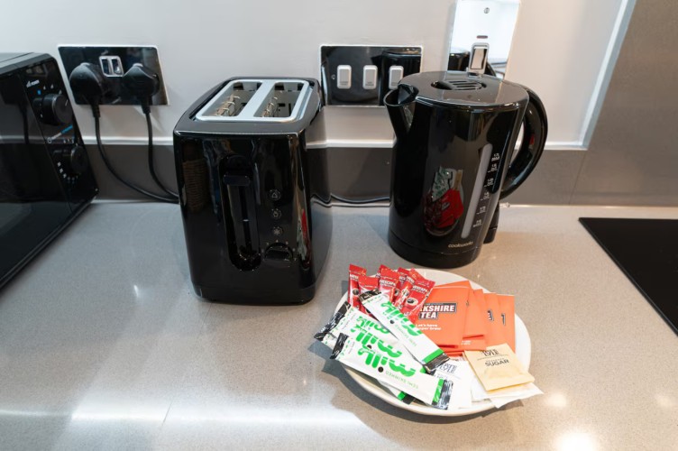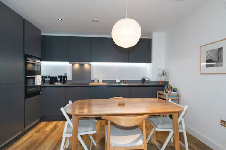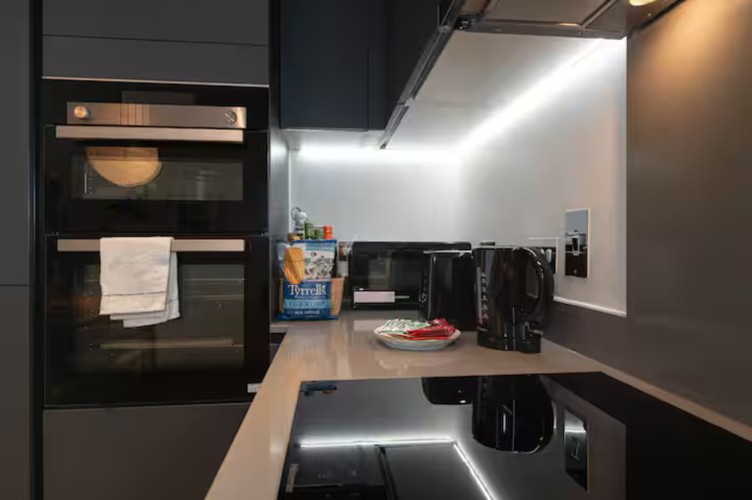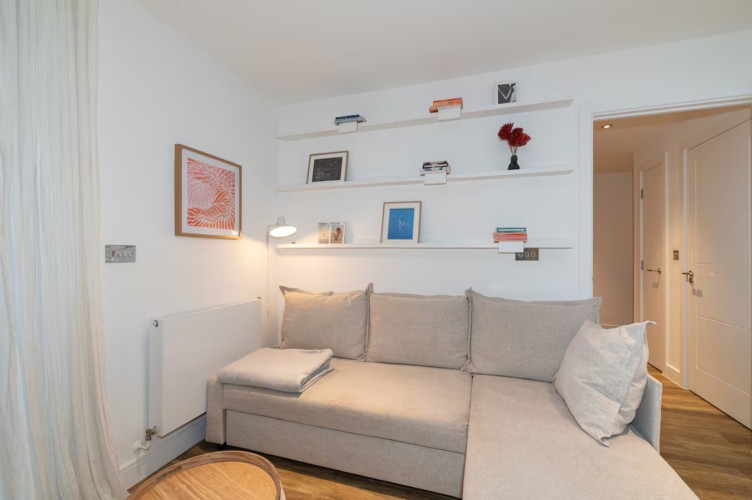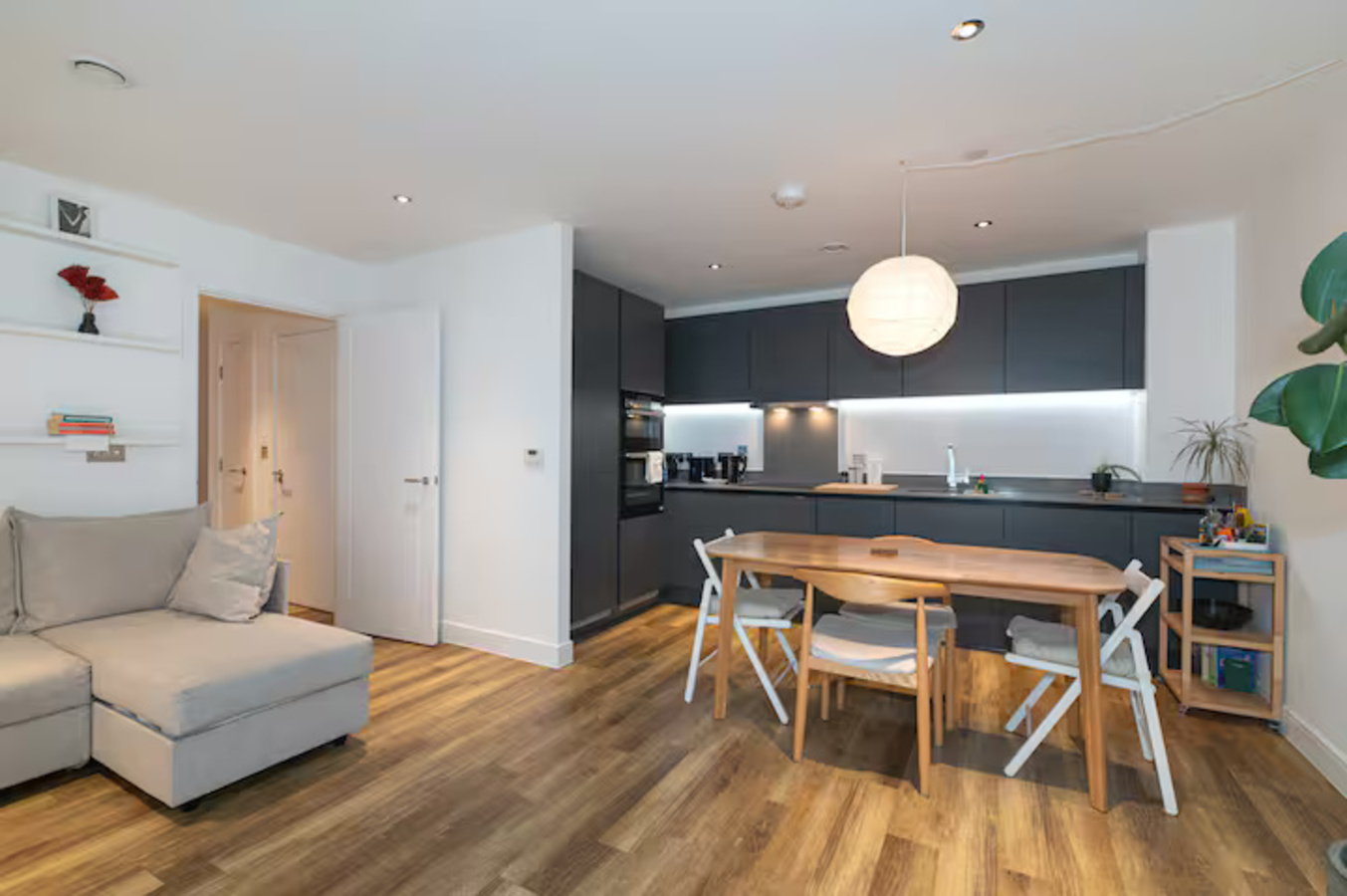 The flat has a spacious and comfortable living room where you can truly relax after a day out. There is a large sofa that easily transforms into a cosy sofa bed for two guests, a smart TV for movie nights and fast, reliable WiFi. The open plan kitchen is fully fitted and ideal for cooking meals at home or enjoying a slow breakfast before heading out.