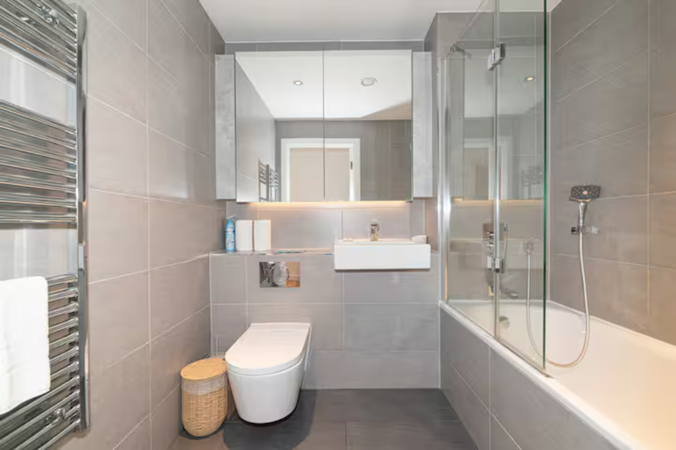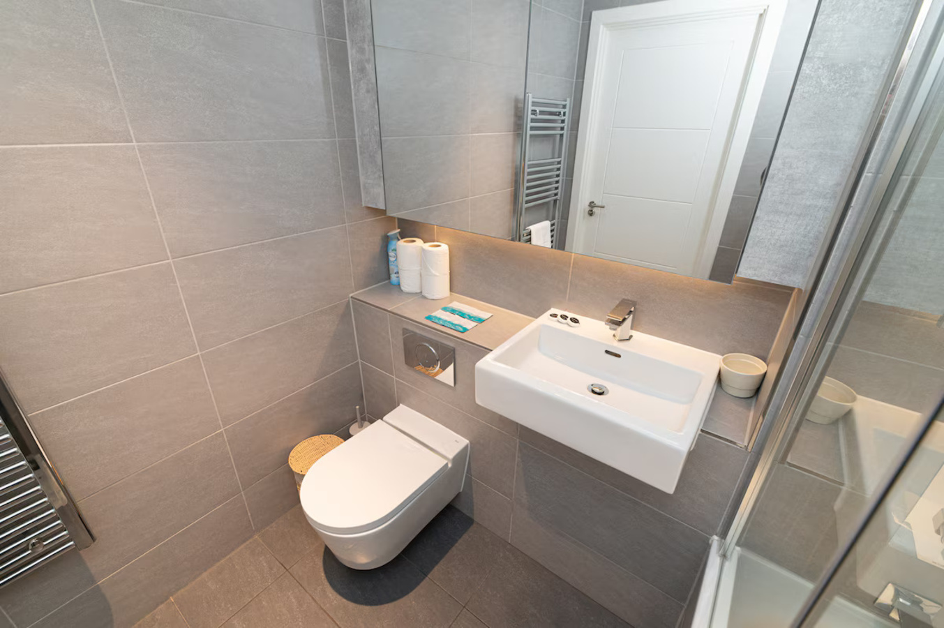 The flat also offers a full bathroom with a shower over the bath, perfect for a quick refresh or a long soak.