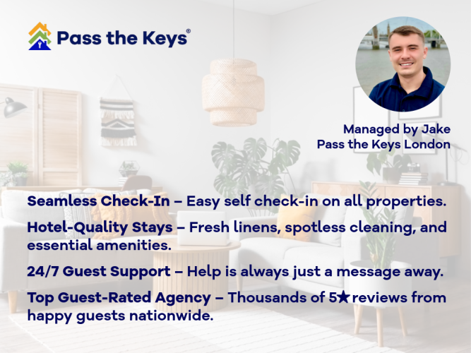 Pass the Keys® provides a hotel standard of service for short-let properties. The property is professionally maintained and cleaned, and professionally cleaned linens and toiletries are guaranteed. 24/7 guest support is also available before and during your stay.