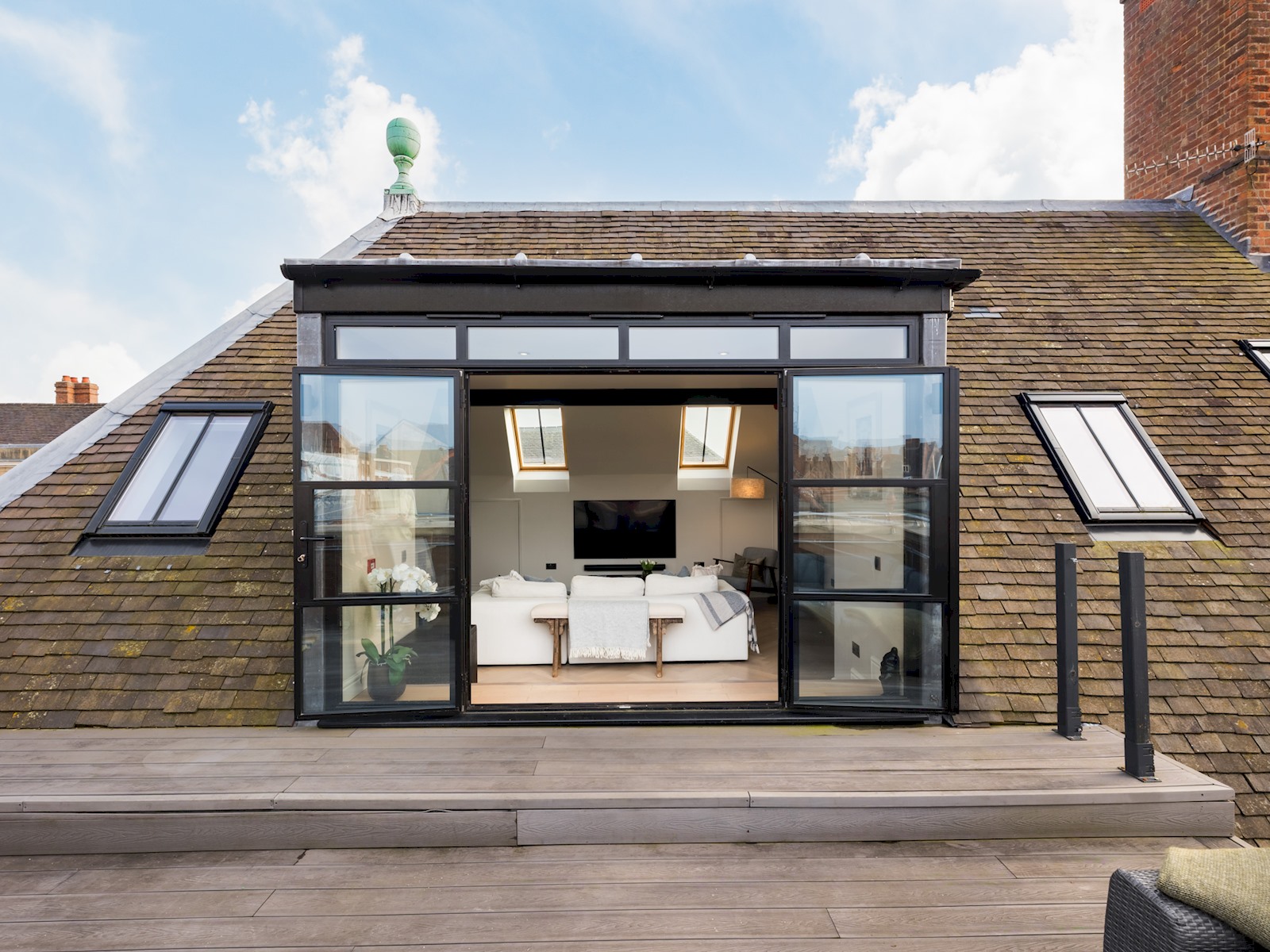 The property offers everything you need, whether you’re having a chilled night in on the sofa, enjoying the 65 inch TV with surround sound or sipping an evening drink whilst relaxing, watching the sunset on potentially the biggest sun terrace in Central Warwick.