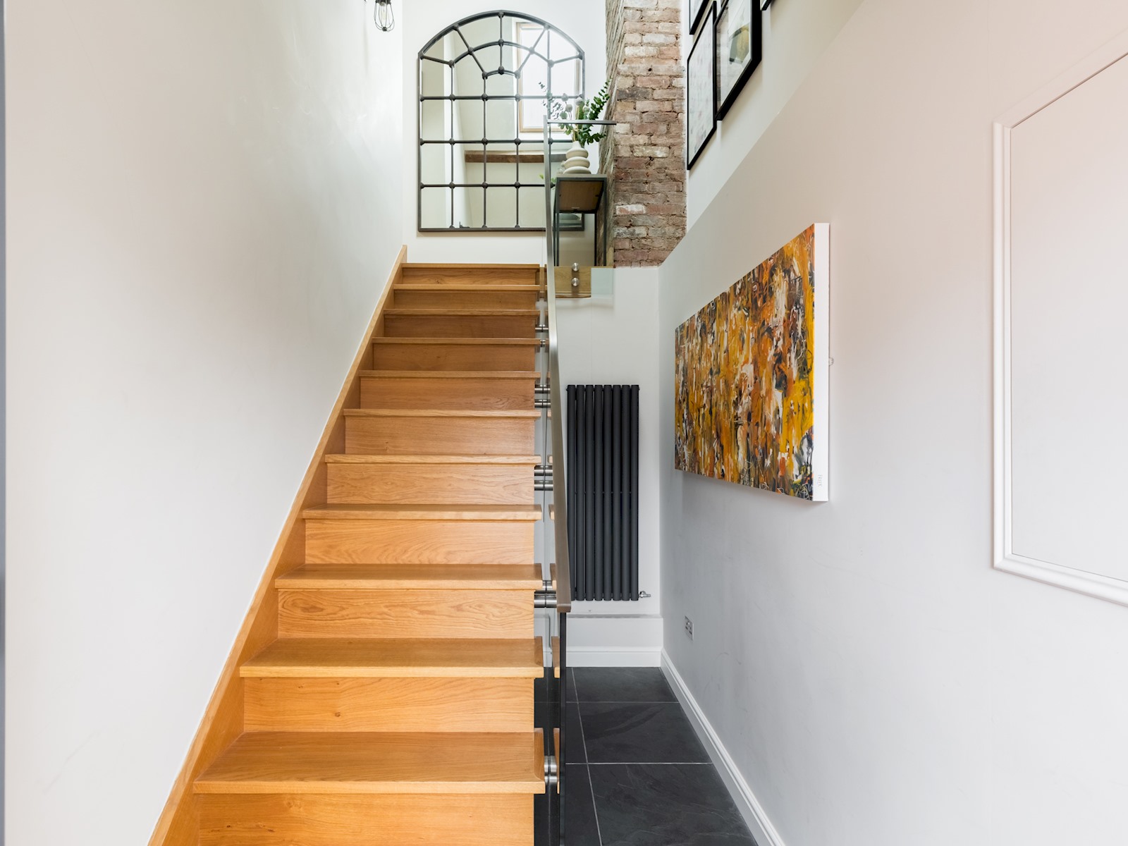 Recently developed modern space in the loft above an old bank.