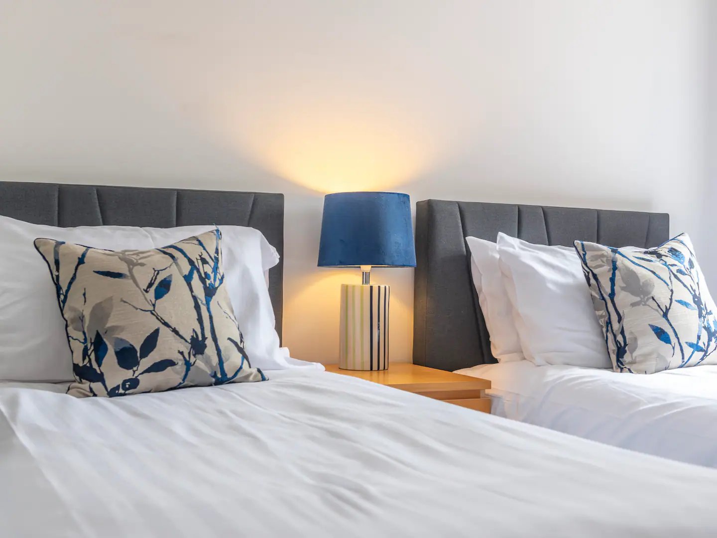 The bedrooms are also off the hall, the first has twin beds with hotel quality linen and plenty of wardrobe space. There is a shower room and a bathroom ensuite, both have freshly laundered towels and hotel style toiletries.