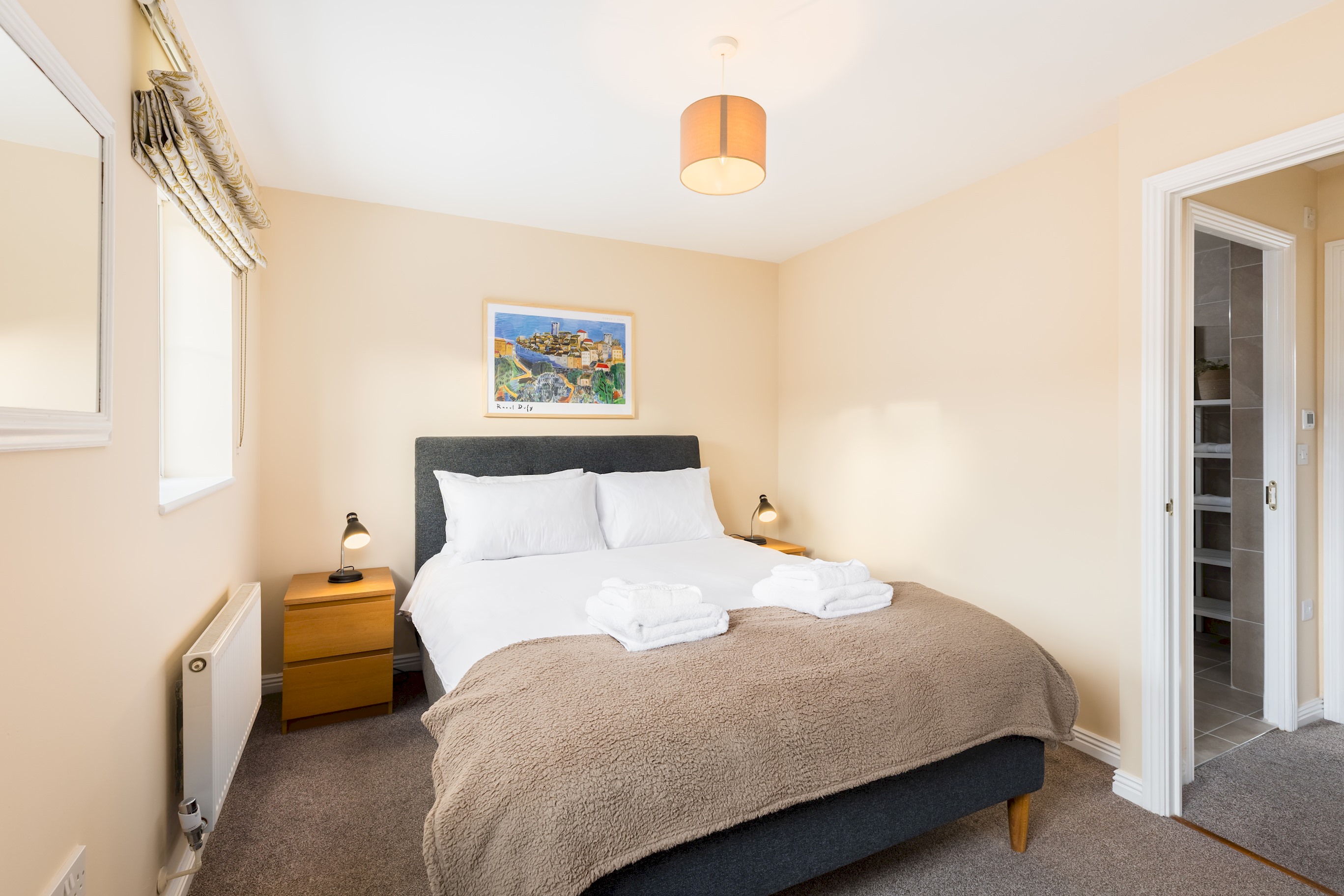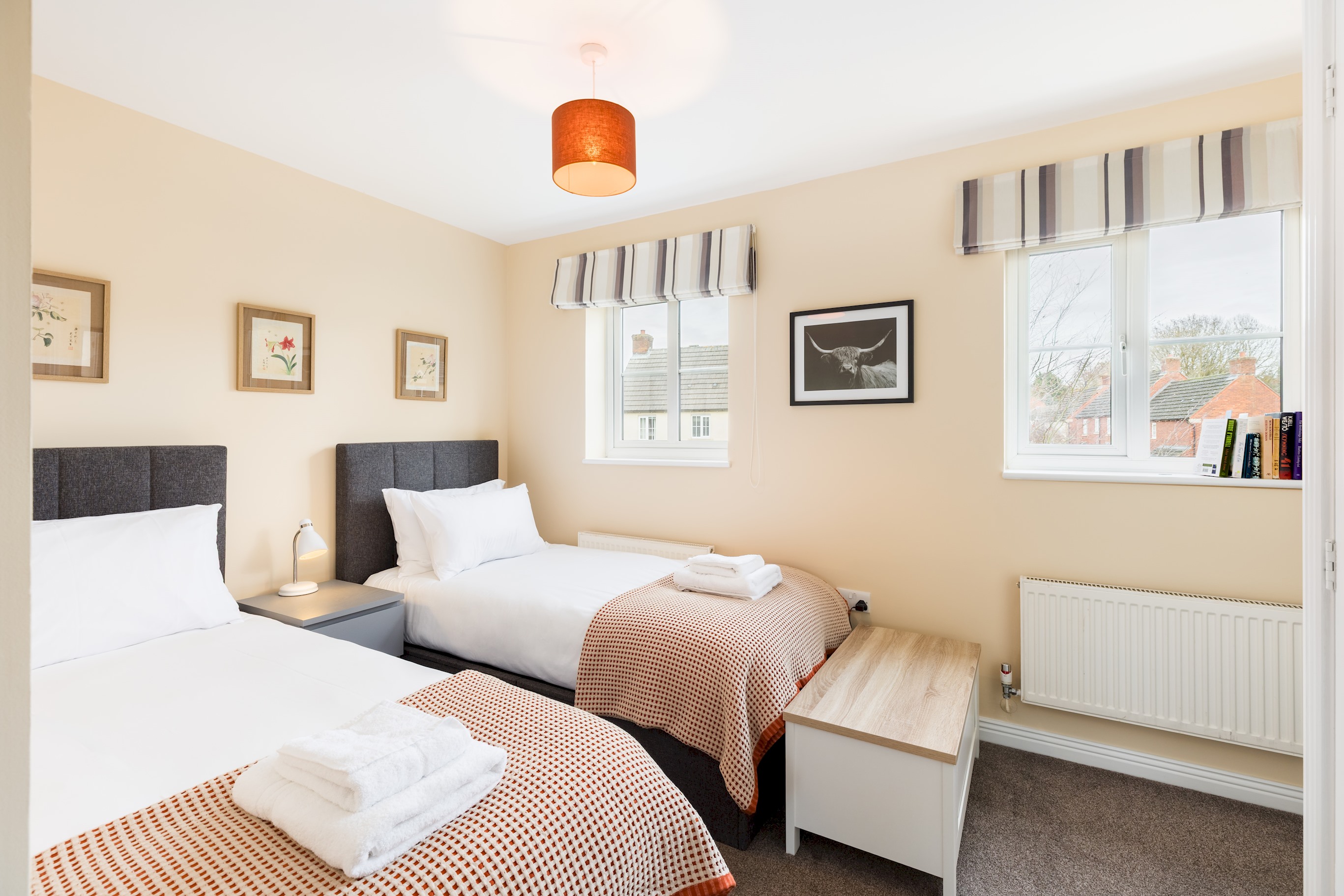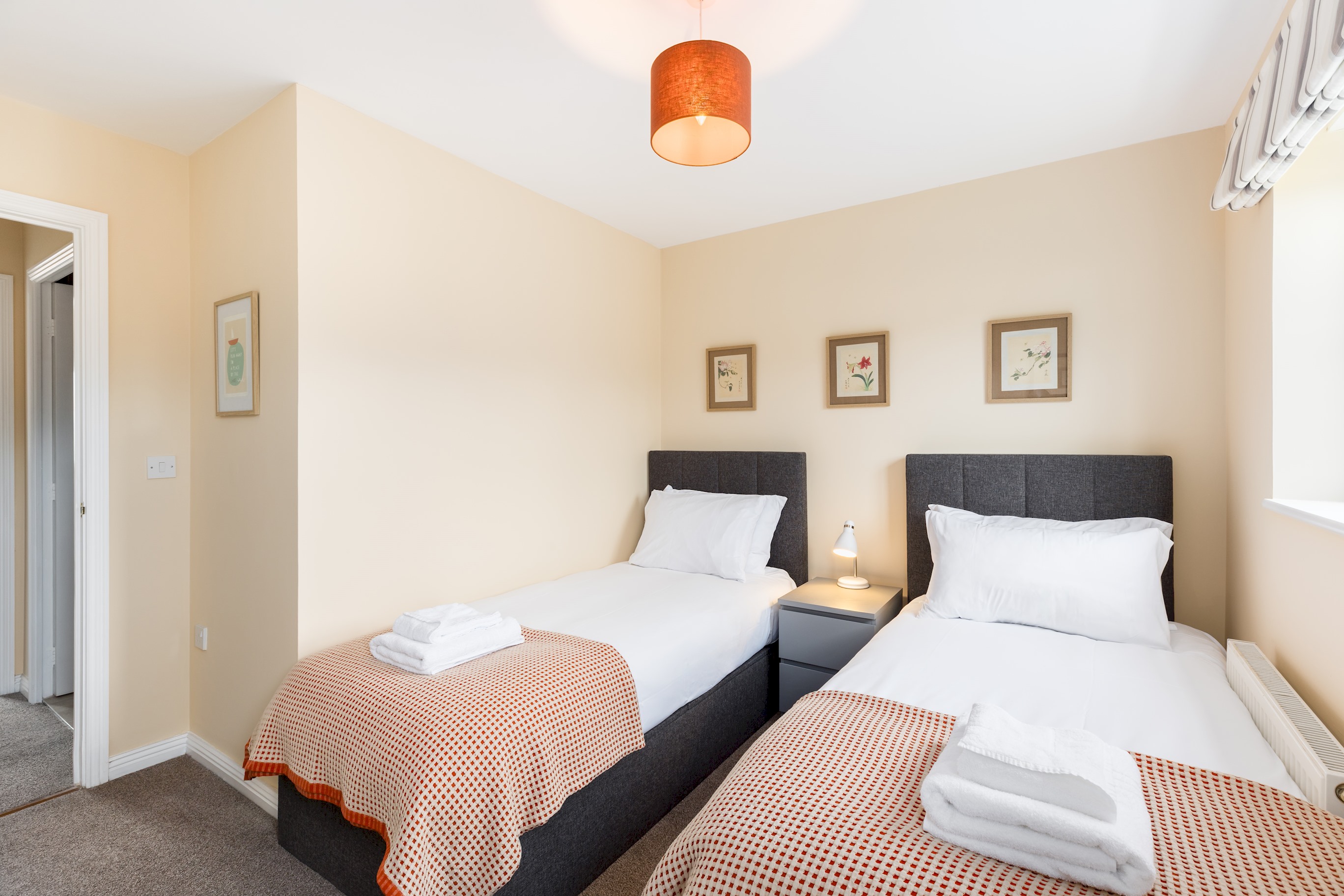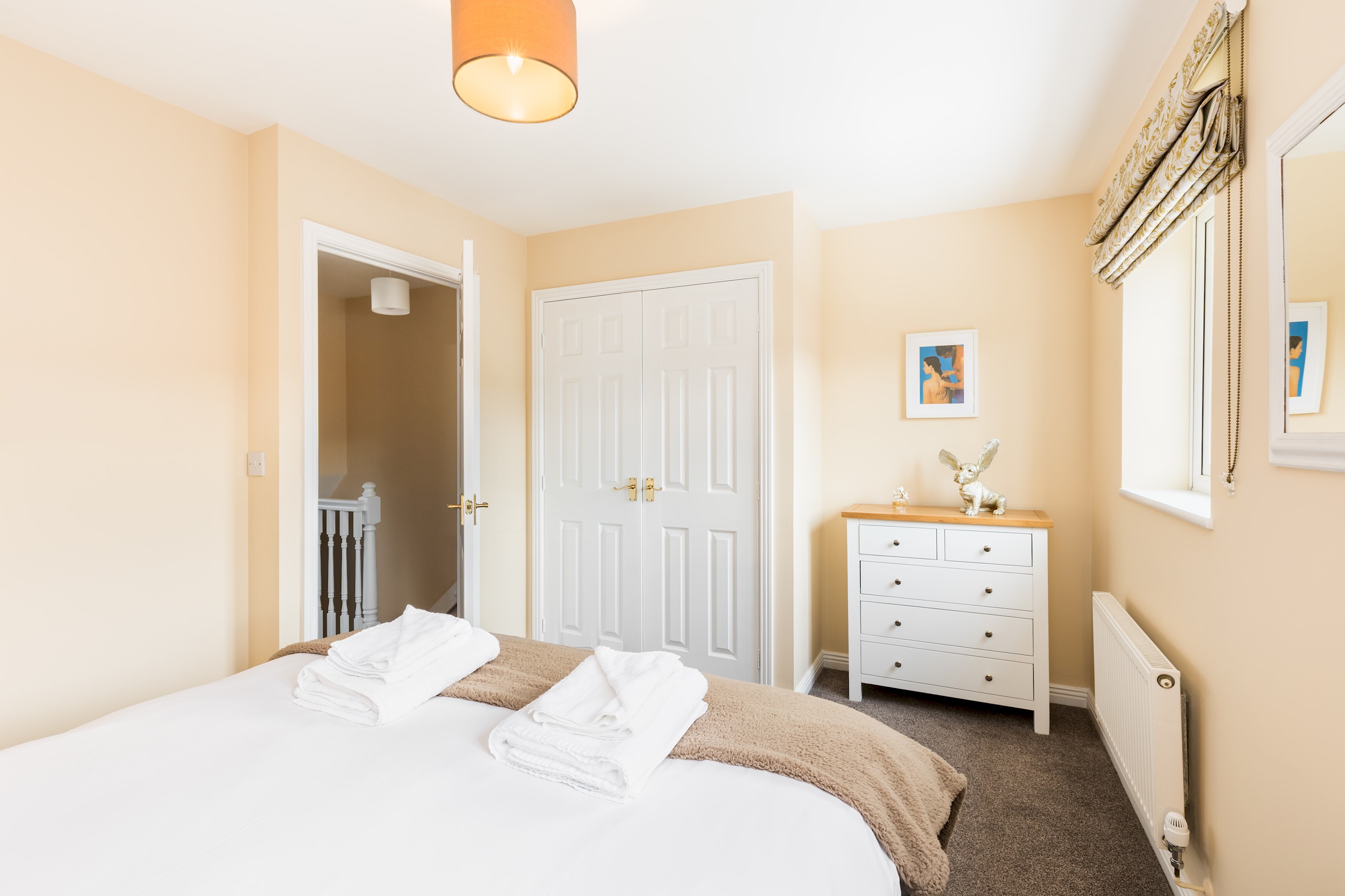 Heading up to the first floor you will find the two bedrooms, one with double size and a twin room with 2 ottoman single beds. Both bedrooms have plenty of storage space and come with hotel quality crisp cotton sheets, fluffy towels for each guest and complementary toiletries. There is also the stylish family shower-room, with a separate WC downstairs. There is central gas heating throughout.