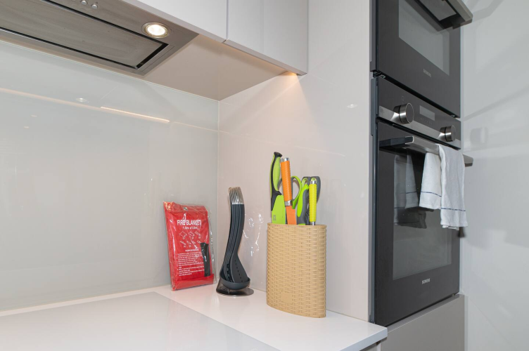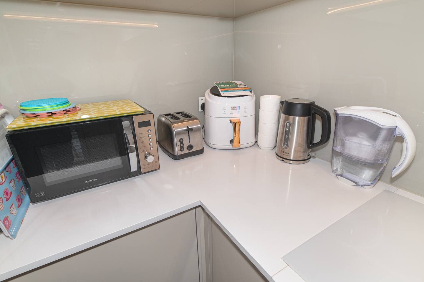 Oven • Microwave • Electric hob • Fridge-freezer • Dishwasher • Kettle • Toaster • Full cookware & utensils