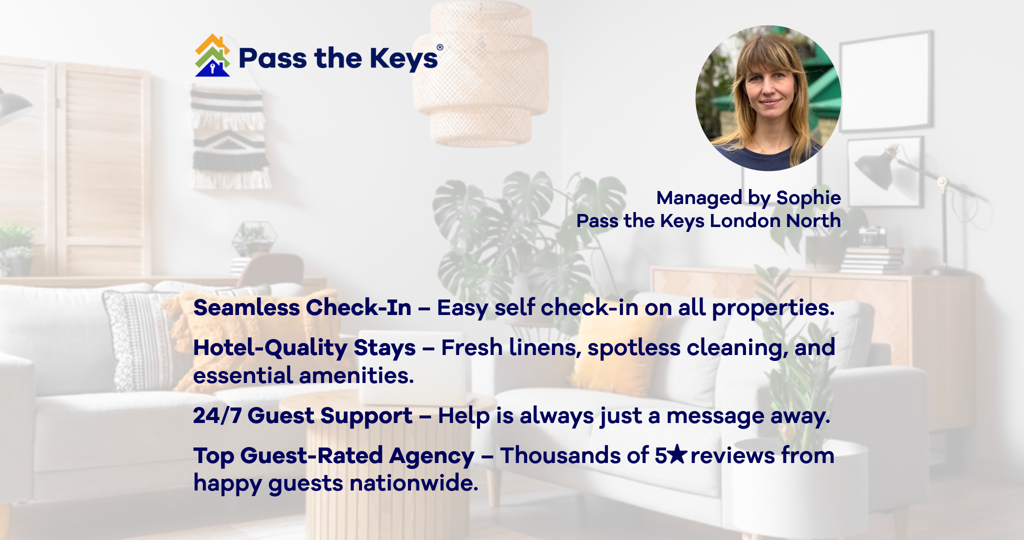 Pass the Keys® provides a hotel standard of service for short-let properties. The property is professionally maintained and cleaned, and professionally cleaned linens and toiletries are guaranteed. 24/7 guest support is also available before and during your stay.