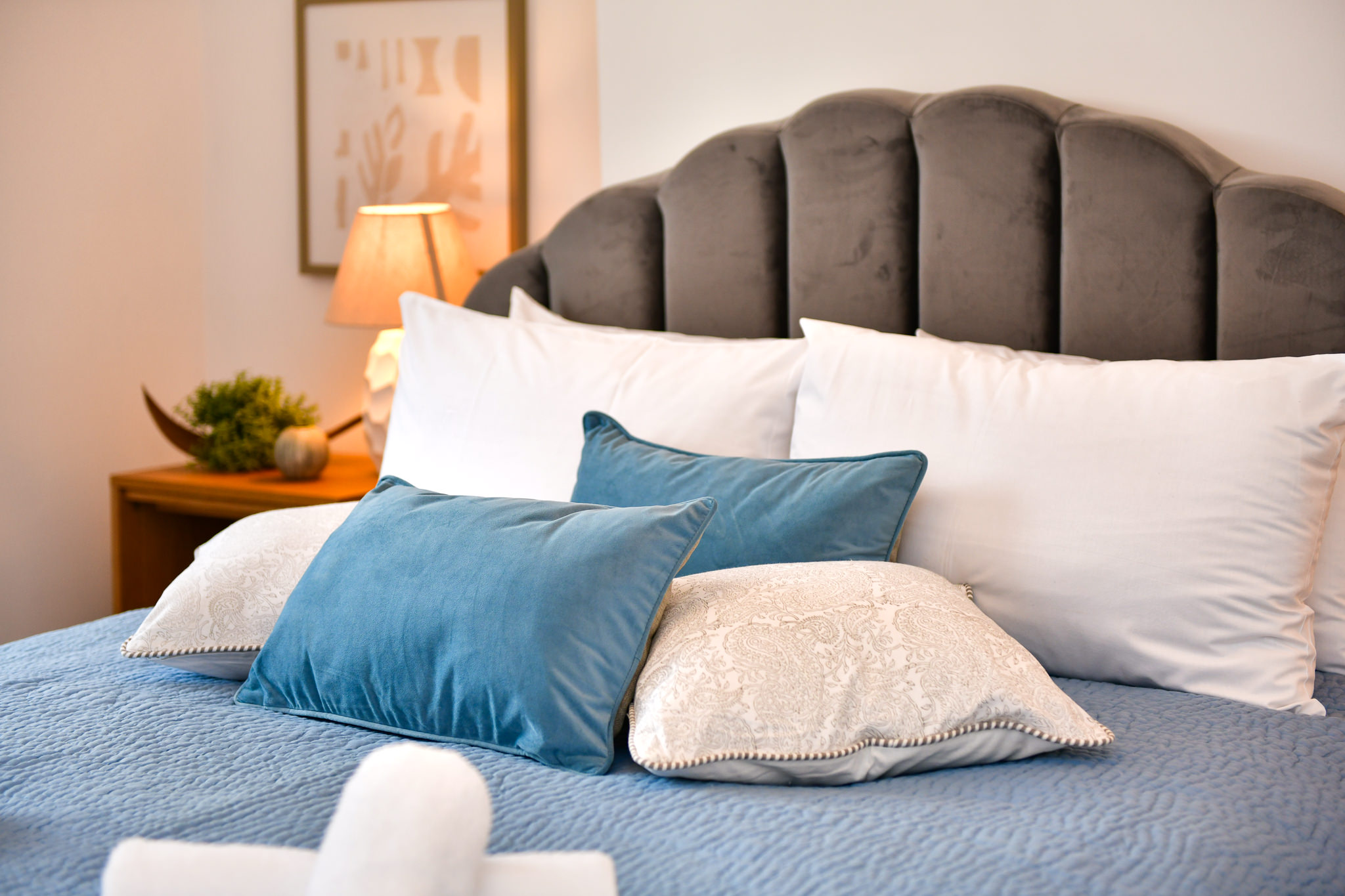 All bedrooms are thoughtfully styled with storage space and fresh linens for a comfortable night’s sleep.