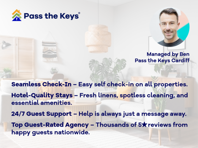 Hi, I'm Ben Simmons, owner of Pass the Keys® Cardiff & Newport. I am very excited to provide expert holiday let management to the cultural city and vibrant towns of Cardiff and Newport. If you have a property in Cardiff and Newport and are interested to find out how much you could earn as a short-let host through Airbnb, give Pass the Keys® Cardiff & Newport a call on today.