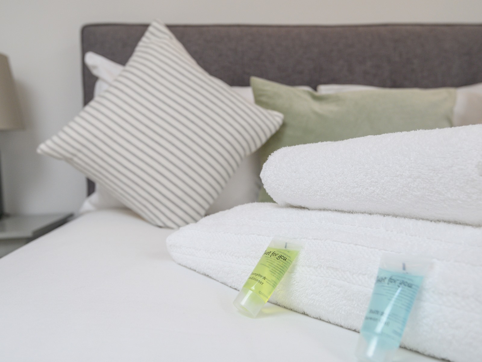professionally maintained and cleaned, and professionally cleaned linens and toiletries are
