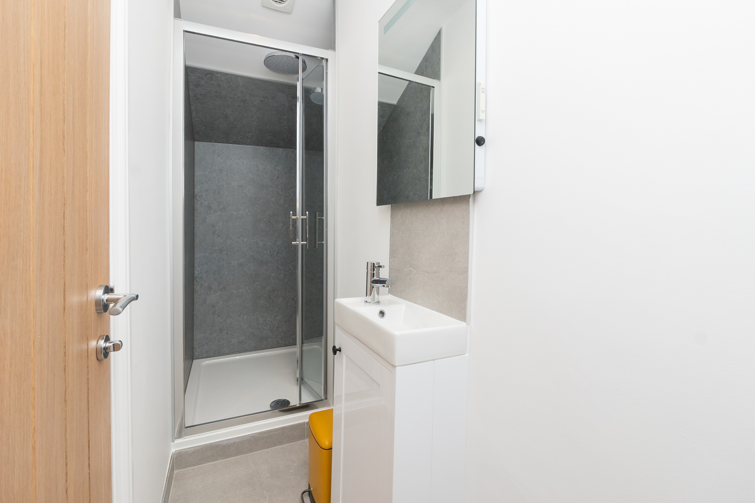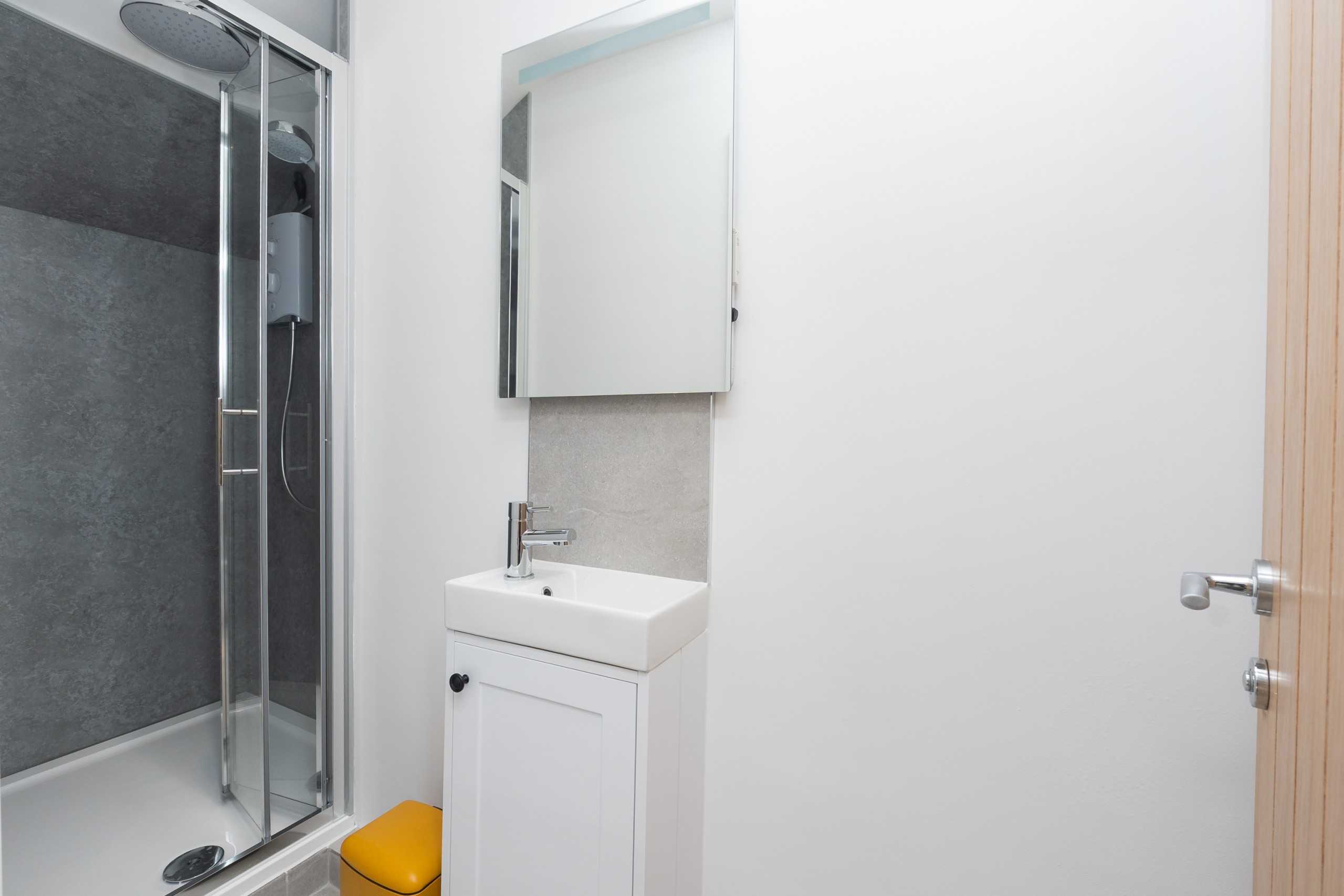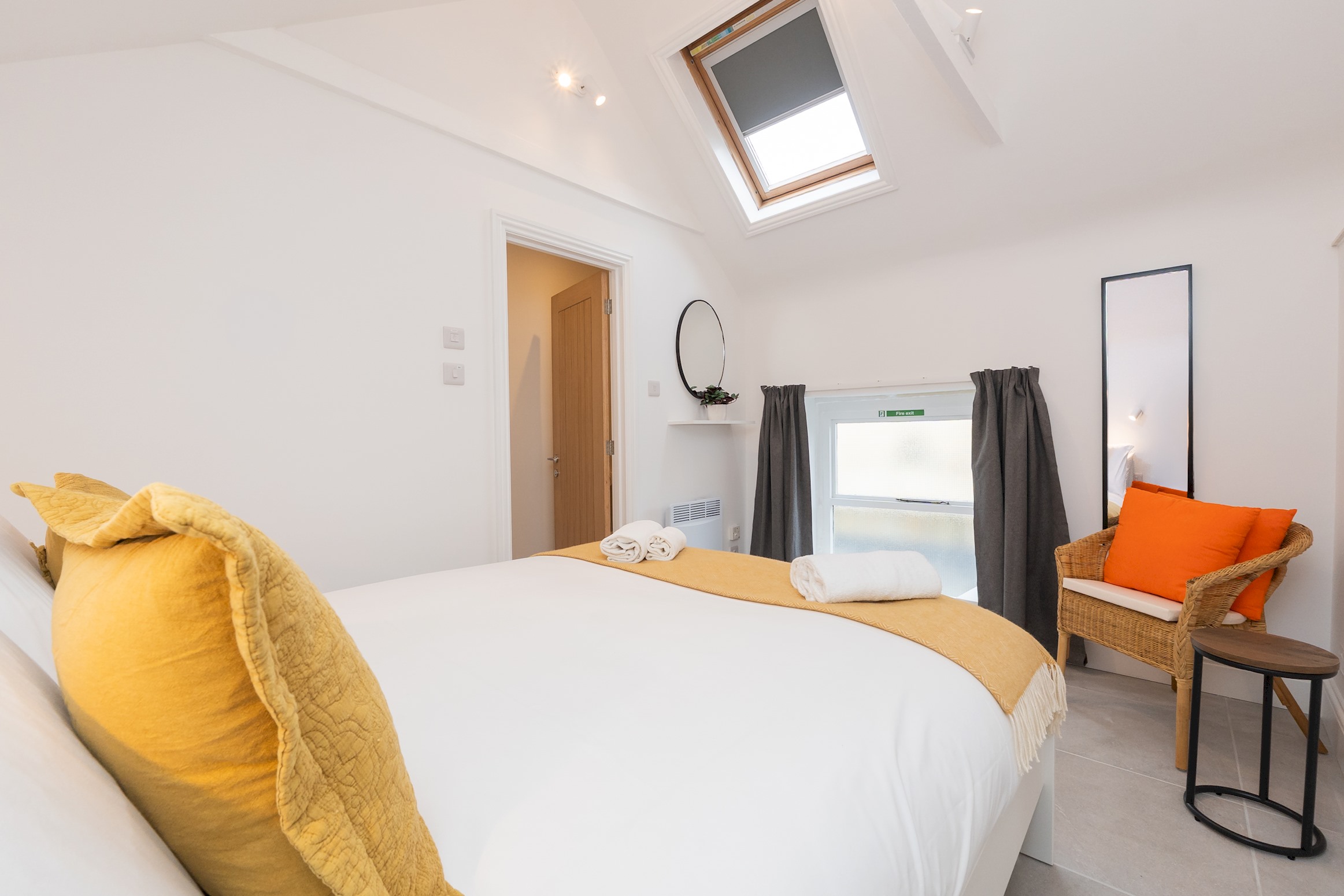 Self contained, single story flat with a beautifully presented interior, light and modern. There is an open plan living space with dining area and a fully equipped, fitted kitchen. The bedroom has a comfortable king size bed and adjoining shower