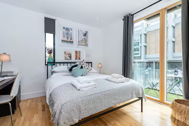 Bedroom 1: Double Bed / Balcony / Desk & Chair