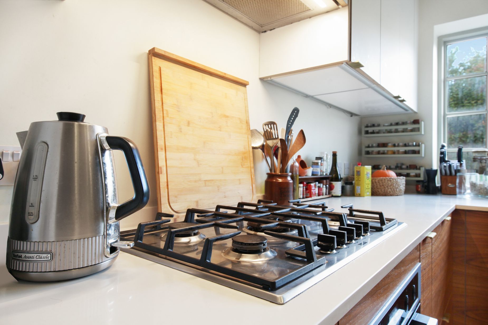 The modern kitchen is fully equipped with anything you need including oven, hob, microwave, fridge-freezer, and dishwasher.