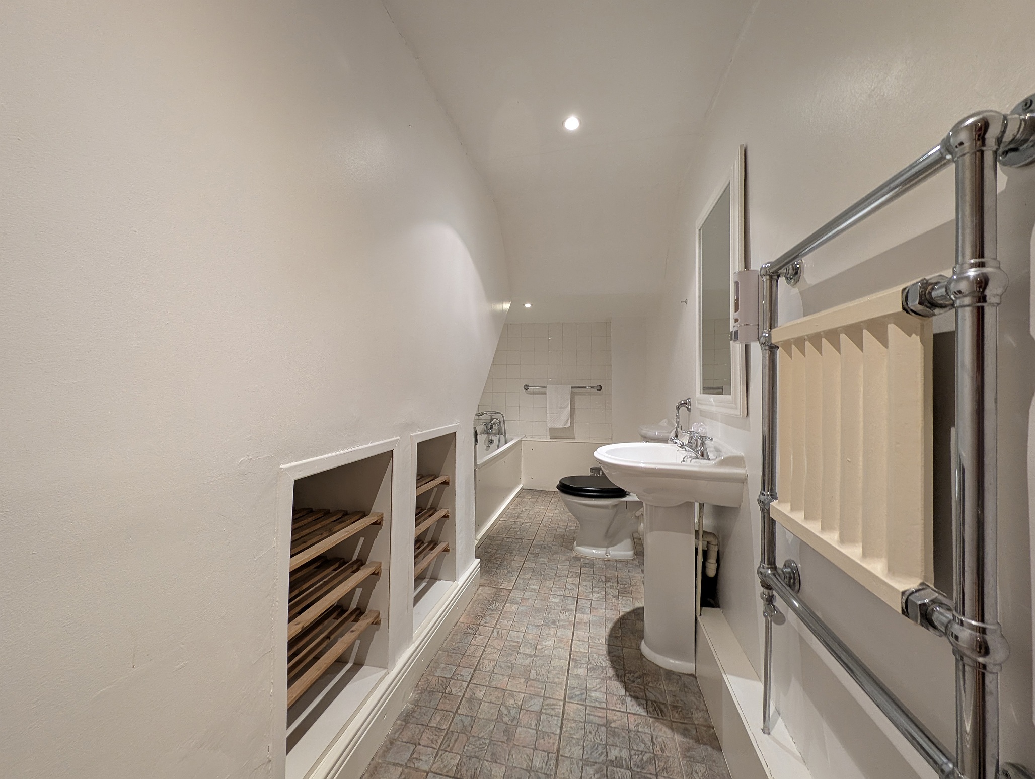 The bathroom contains a shower over the bath but due to restricted head height it is via use of a hand held shower only.