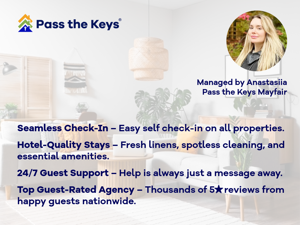 Hello, I am Anastasiia, the Managing Director of Pass The Keys - Mayfair, and it is a delight to be a part of the Pass The Keys family. With over fifteen years of collective hospitality expertise, we take pride in delivering exceptional services daily. Our diverse property portfolio spans across London, including the prestigious Mayfair district. From seamless back-to-back cleaning sessions to coordinating maintenance services, we ensure a hassle-free hosting experience for all our hosts. With our seven-day operational coverage, guests can rest assured that their stay will surpass expectations, backed by unlimited 24/7 guest support.
