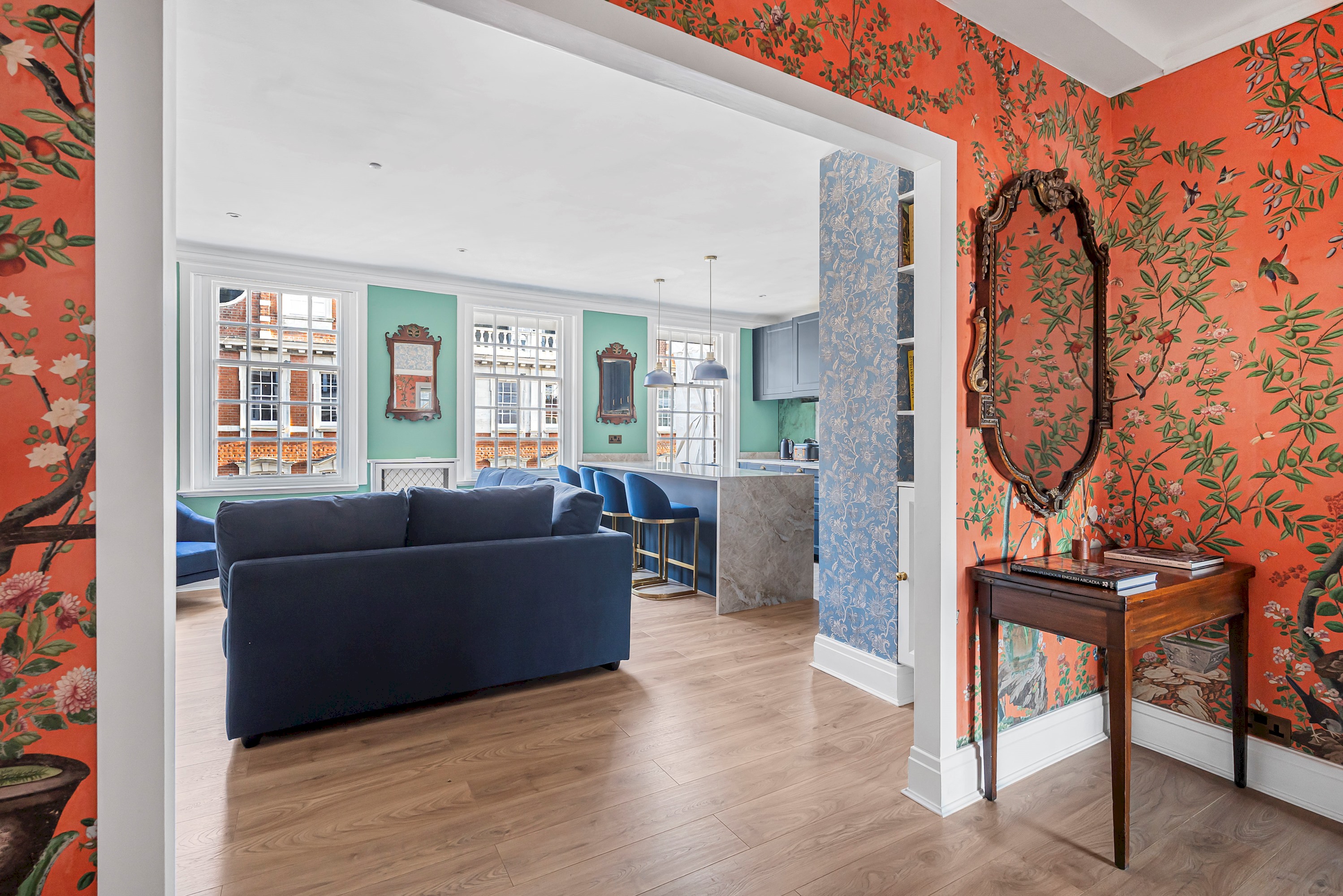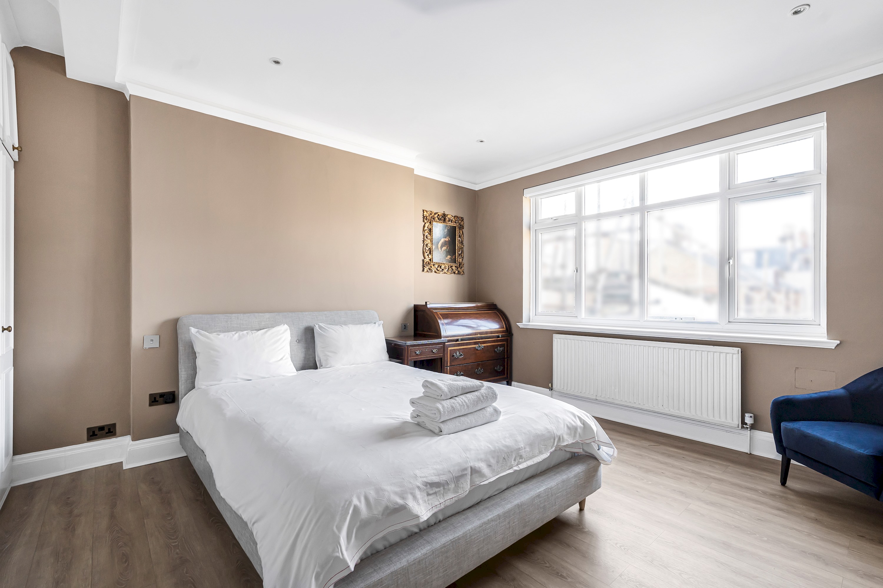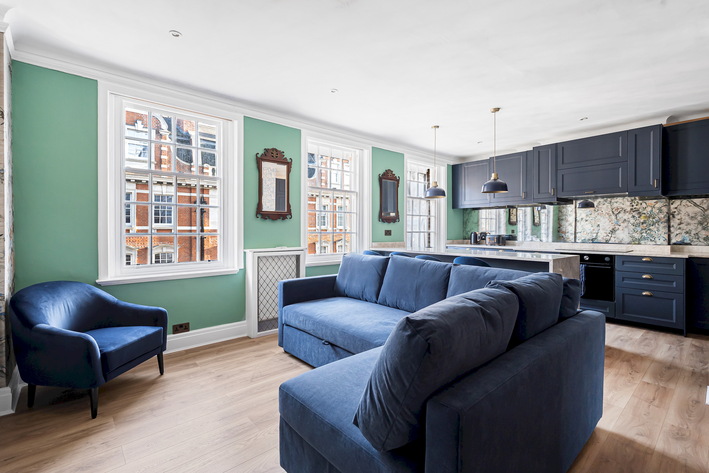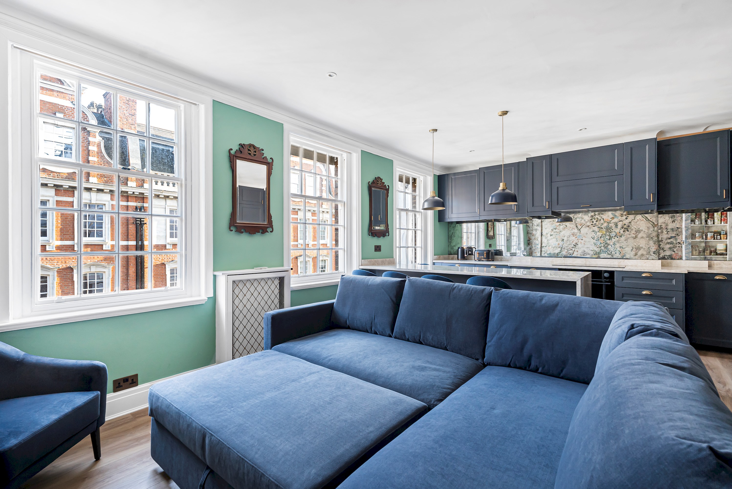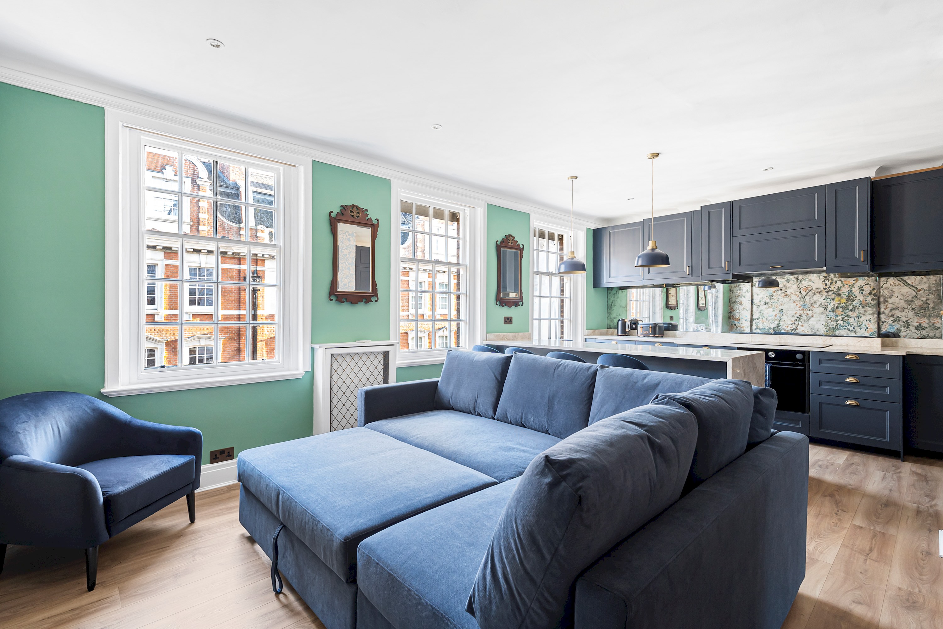 This spacious 1-bedroom flat in the heart of Marylebone has been recently refurbished to the highest standard, featuring elegant décor and high-end furnishings for a truly luxurious stay. Designed for ultimate comfort, it boasts stylish interiors, designer touches, and a warm ambiance. Situated on the third floor of a charming three-story building with secure access, the property offers both exclusivity and peace of mind. Perfectly positioned in one of London’s most prestigious neighbourhoods, it is just moments from the city’s finest dining, shopping, and cultural attractions.
