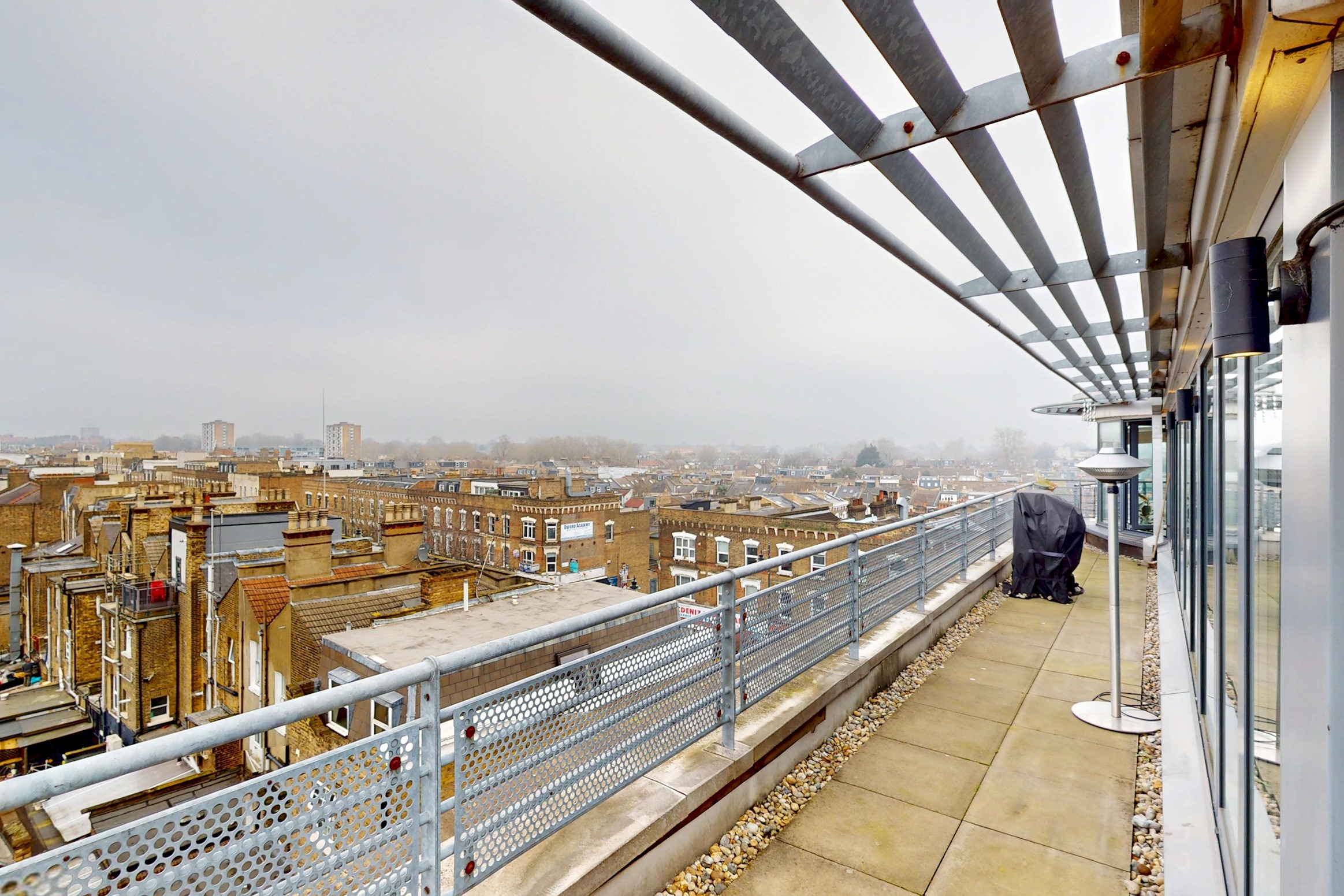 Wake above the rooftops of Dalston and Stoke Newington in this light-filled penthouse sanctuary. With a sweeping wraparound balcony, skyline views and two serene bedrooms, the flat offers space to breathe in the heart of N16. Step out for coffee, parks, pubs and late-night music, then return home to calm, sky and soft light.