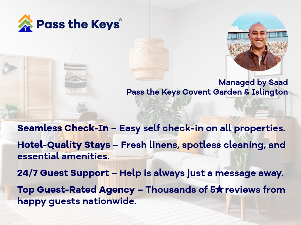 Hi, I’m Saad and I’m the owner of Pass The Keys® Covent Garden & Bloomsbury. I live in Canonbury, right by the station, and I’m an experienced Airbnb Superhost myself with over 7 years of hosting experience and a 4.96* rating. I love North London for its feel of a village while being in one of the most diverse and vibrant cities in the world. As I am a local business owner and employ all my staff locally, I have passion and drive to succeed, and the knowledge, expertise and high-quality standards of the well-established Pass the Keys national brand support me. As a business owner and not just an employee, it is personally important for me to have you, my main customer, be happy and successful. The happier and more successful you are, the happier and more successful I am too - we are partners and we succeed together.
