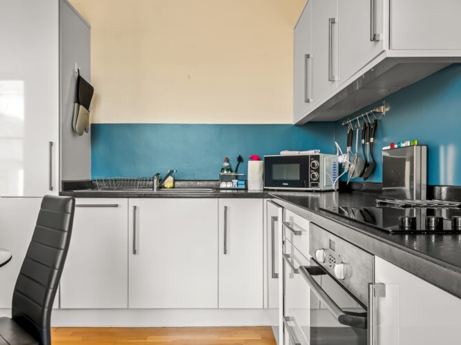 This spacious first floor apartment comes with one off-street allocated car parking space. It also features a fully equipped open plan kitchen/ lounge, one comfortable bedroom and a well maintained tiled bathroom.
