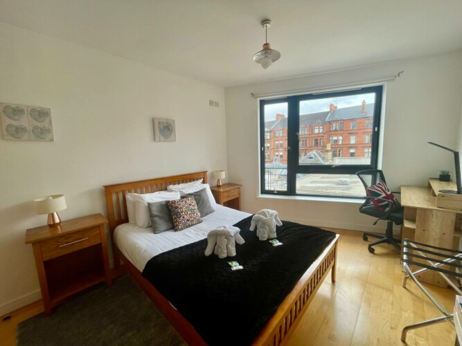 Our west end flat is perfect for visiting Glasgow and right next to a subway station too! The apartment boasts 3 lovely double bedrooms, an open plan living room, kitchen and dining area with great views out towards Creswell Lane and Byres Road.