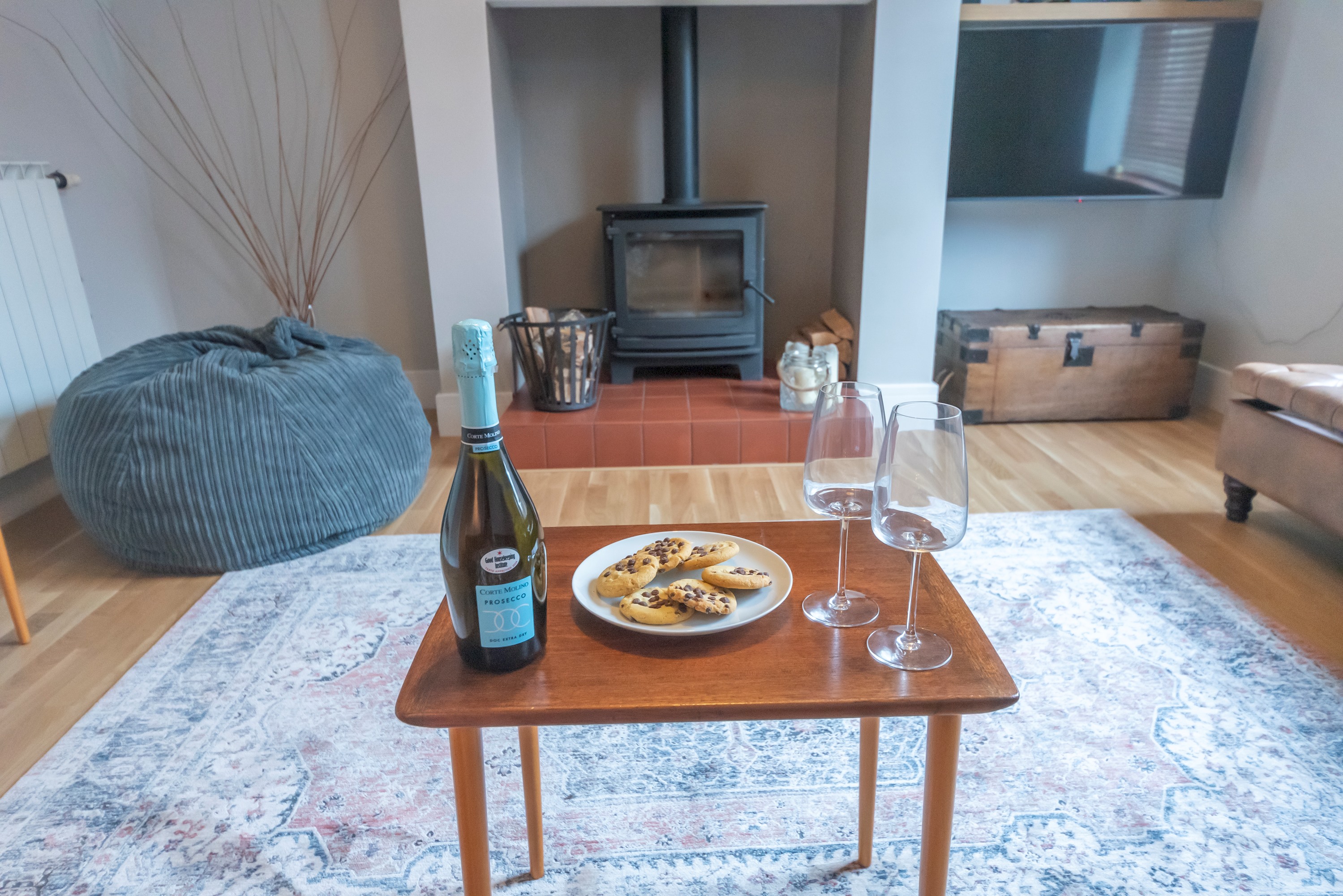 Log burner & double sofa bed