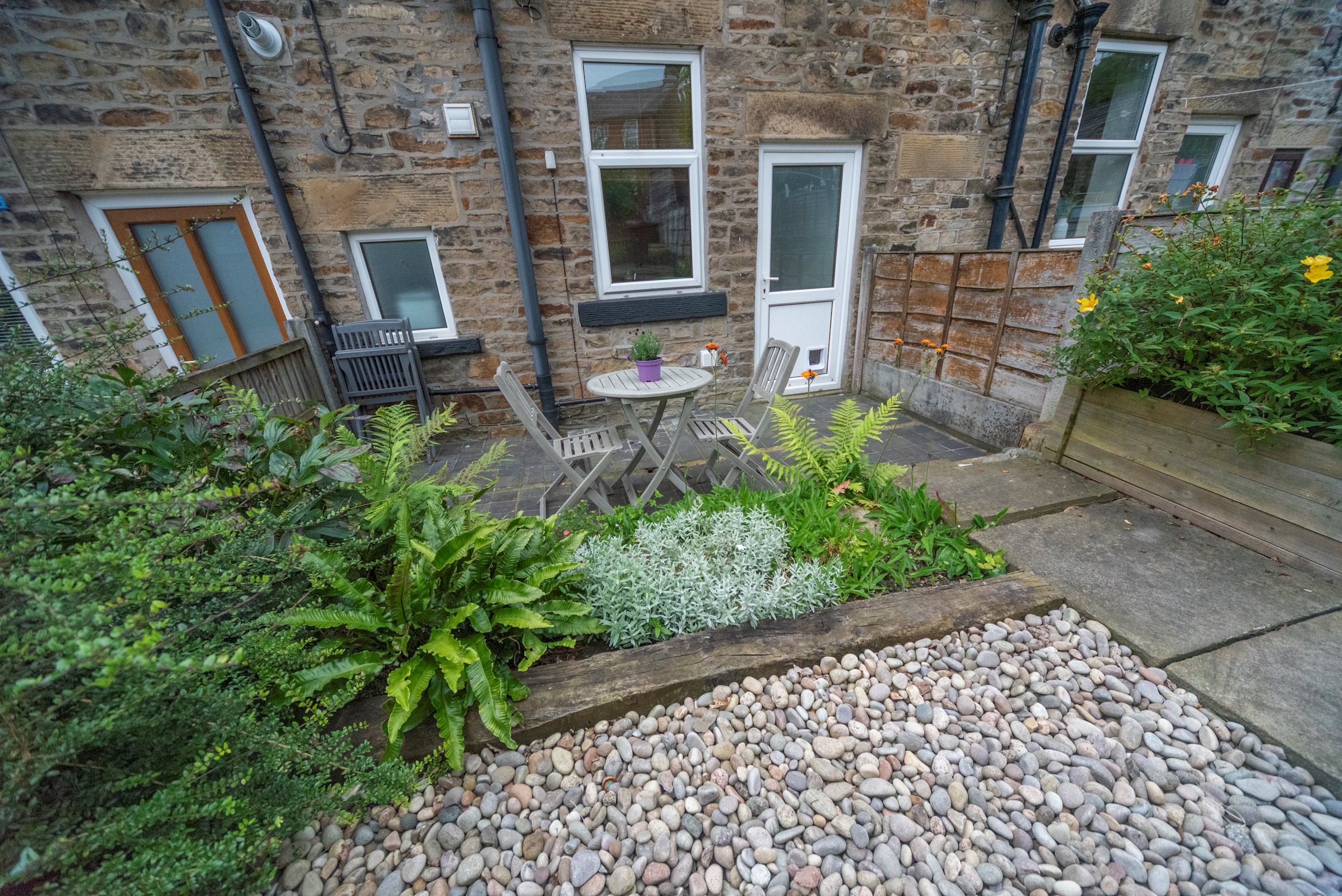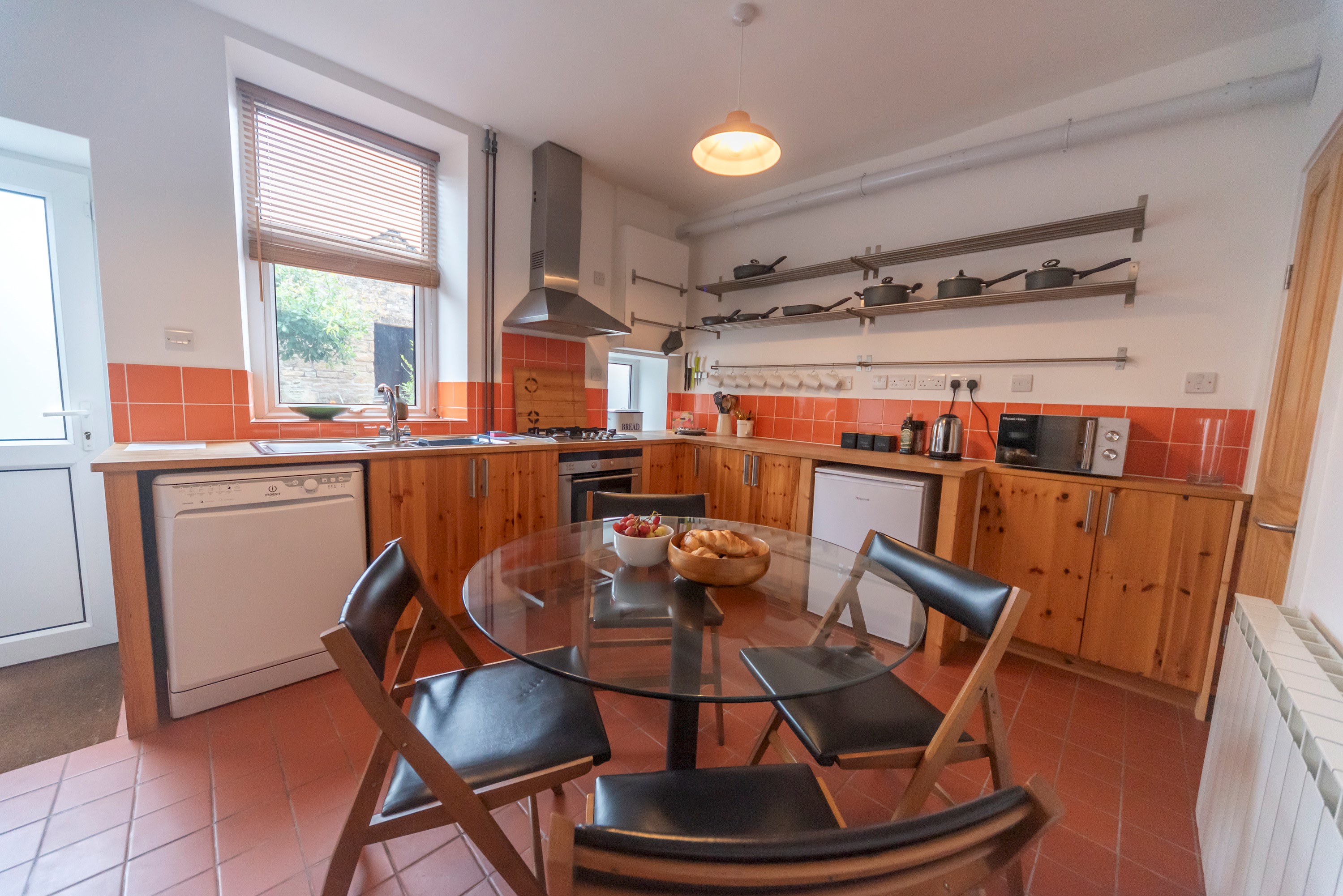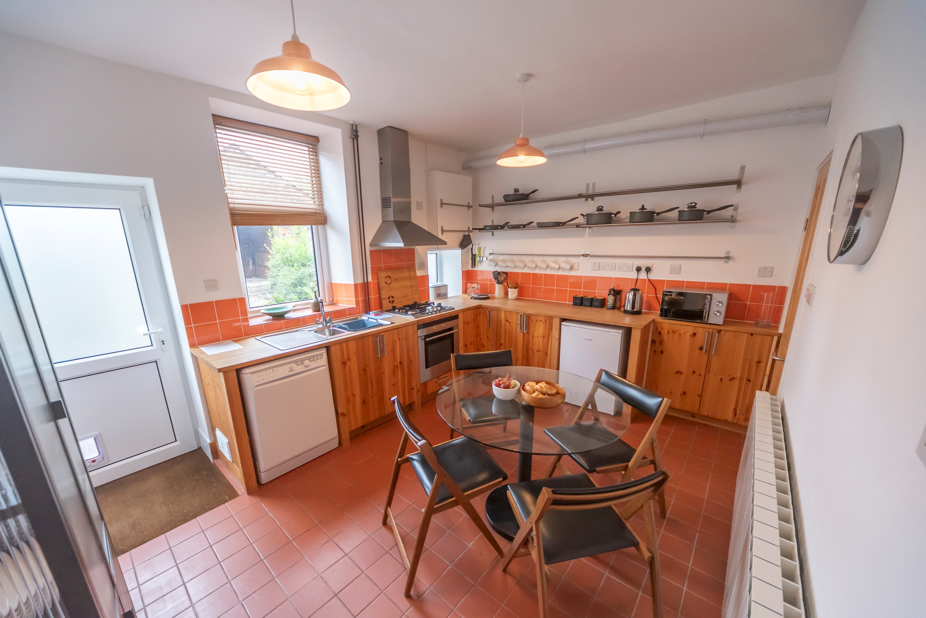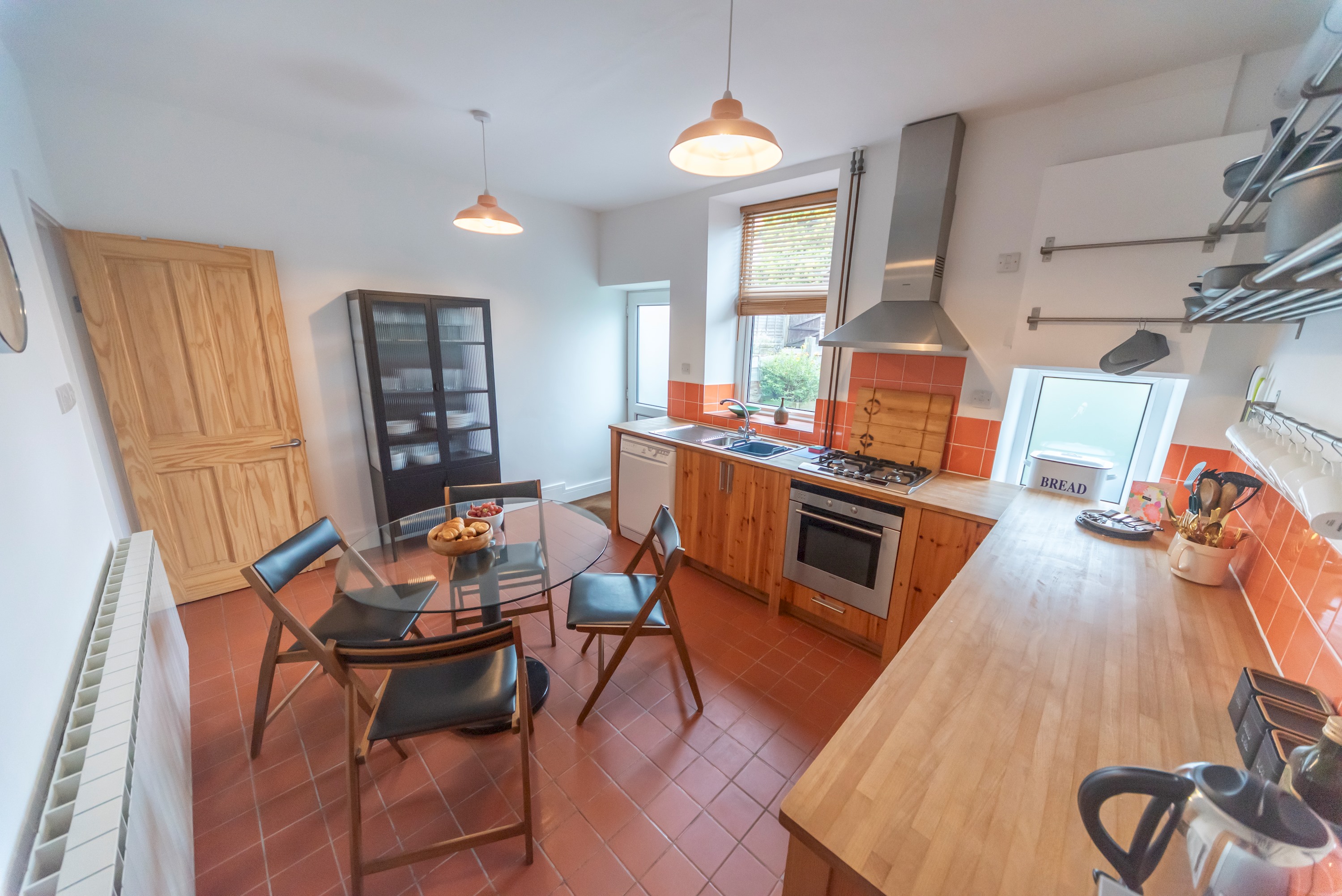 The kitchen diner has access to the enclosed garden and bike store.