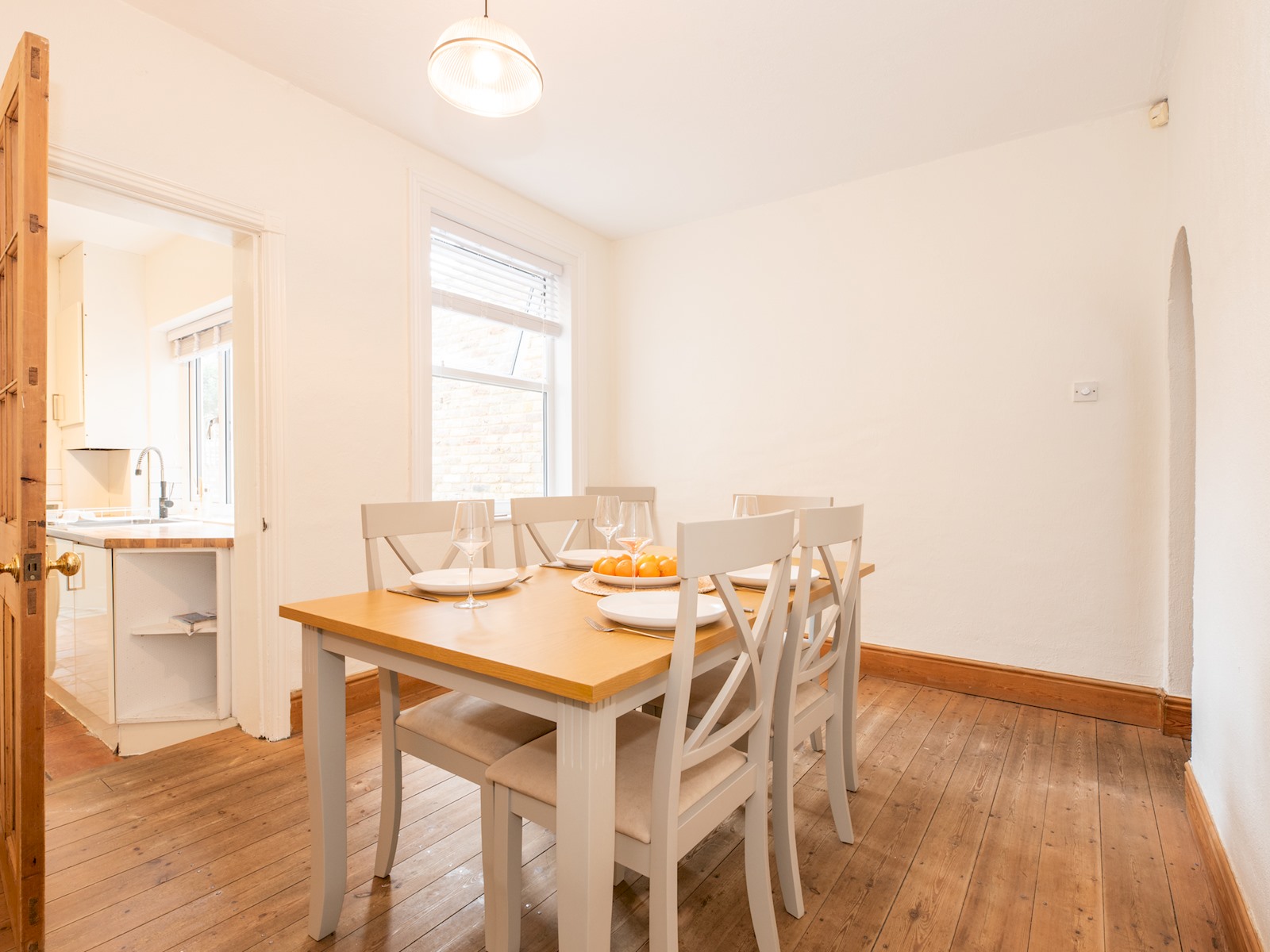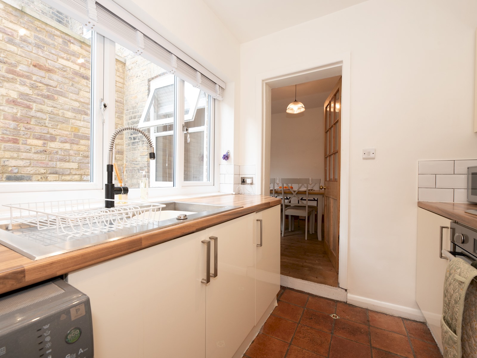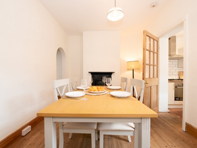 The dining room leads onto the kitchen, which is fully equipped, ready for you to rustle up a meal.