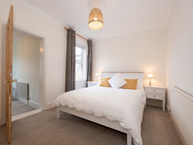 Upstairs you will find two restful bedrooms. One has a king size bed and one has a double. Both beds are new and very comfortable.