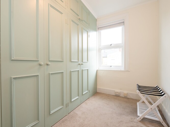 There is a lovely dressing room/office off one of the bedrooms. With a desk and chair, this is a great place to catch up on some work whilst looking out of the window at the garden below.