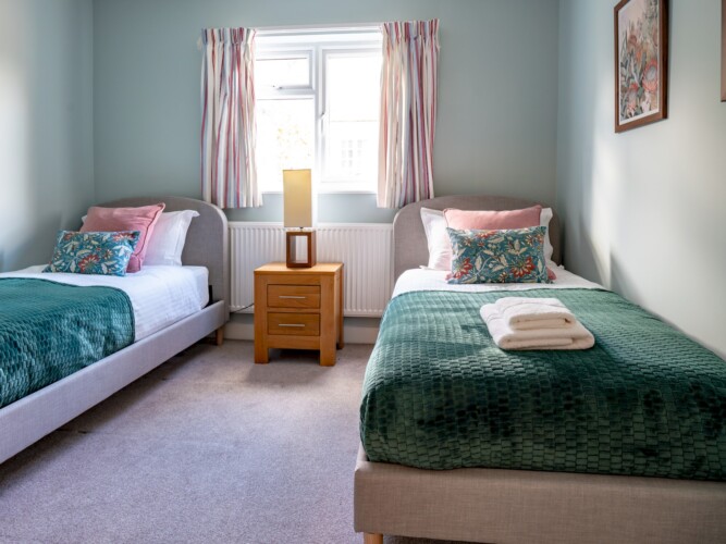 The first floor has the master bedroom with a double bed, a further twin bedroom with two single beds and the family bathroom with bath & a shower. On the top floor there’s a room with a single day bed and a dedicated workspace, perfect if you need a bit of privacy and quiet! PLEASE note the day bed is available on request, and there is a small additional charge of £15 per night. Please advise at the time of booking if you require the day bed so we can provide bedding.