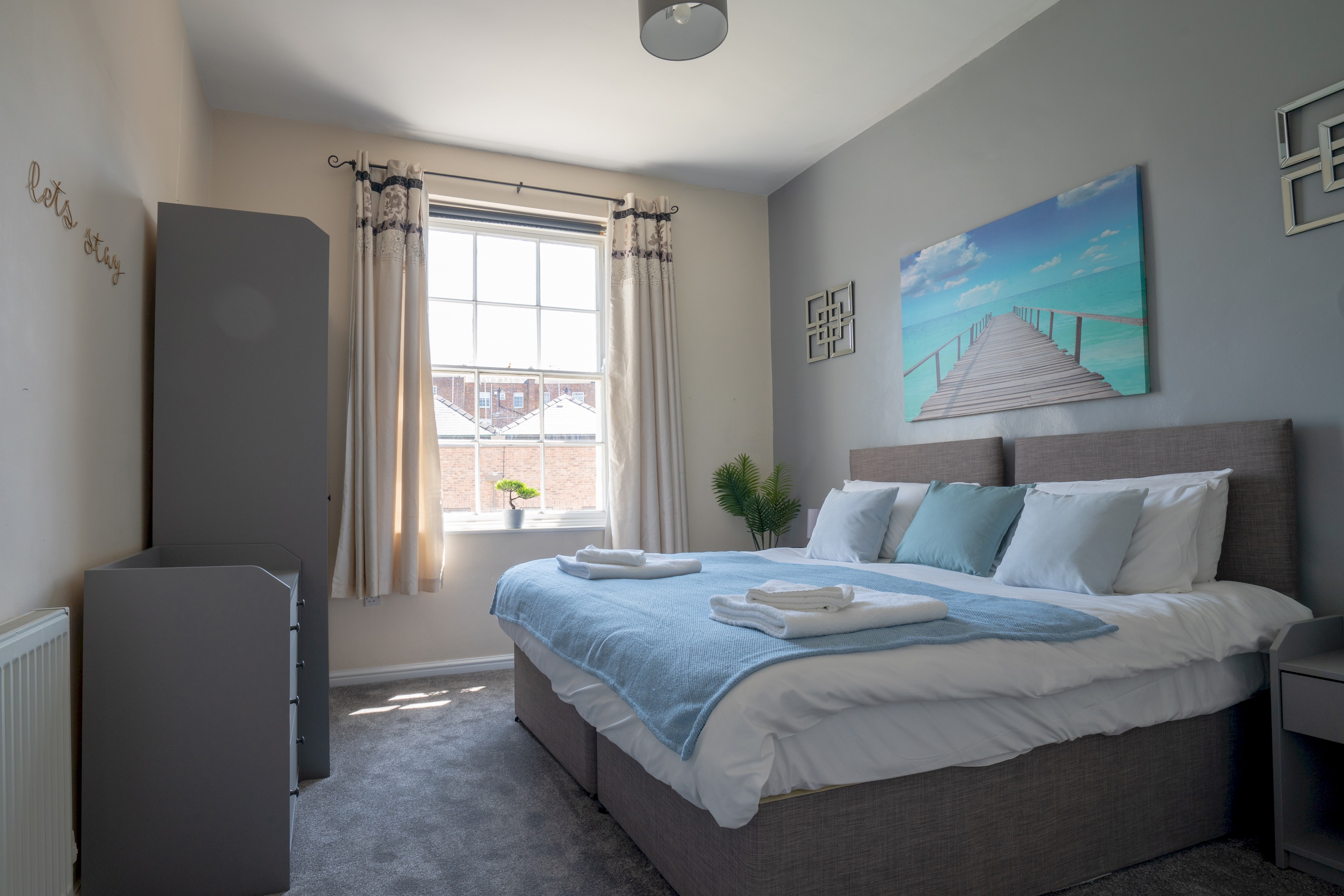 It has a super-king bed, which can be split into two singles on request at time of booking only, and a second bedroom with two further single beds.