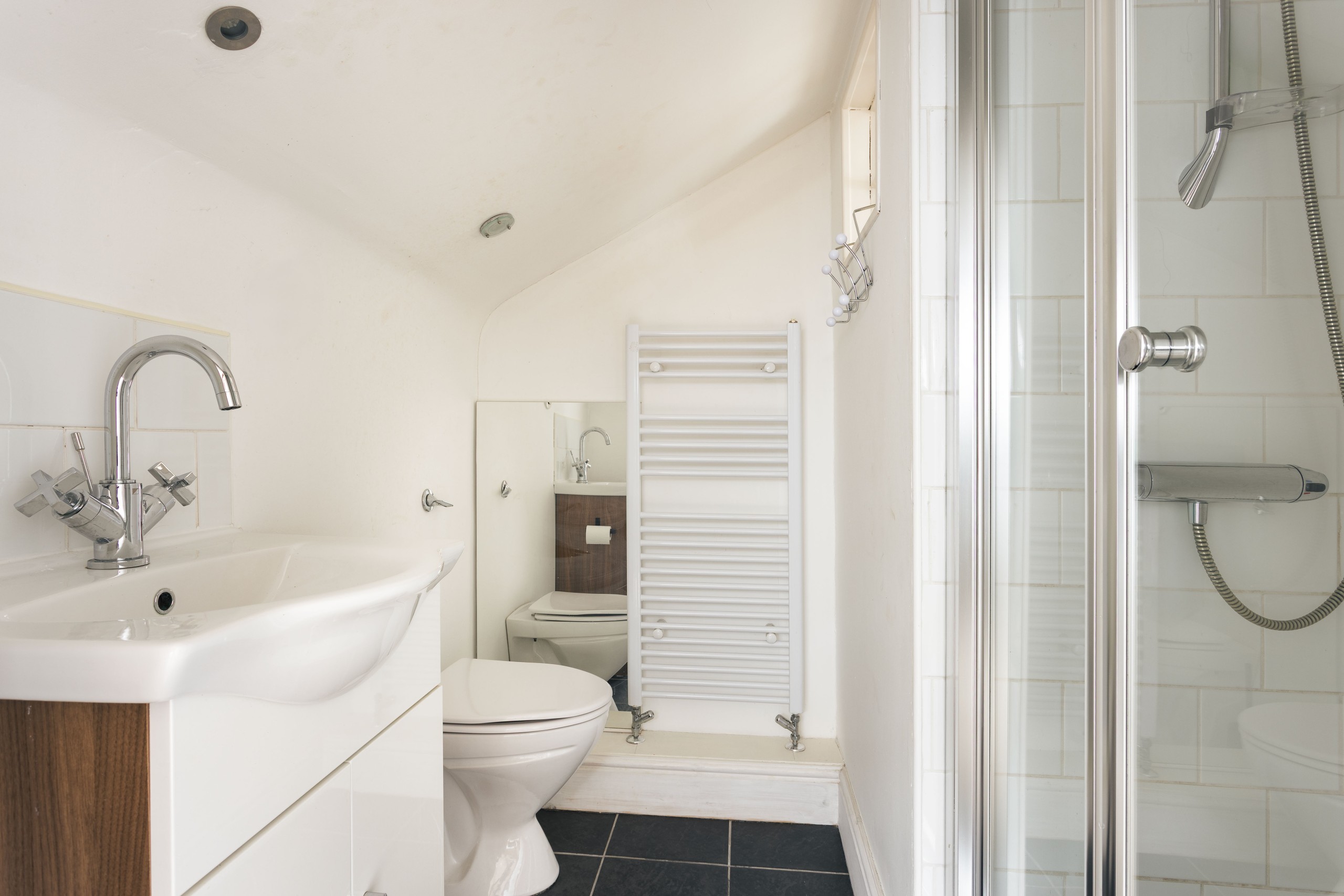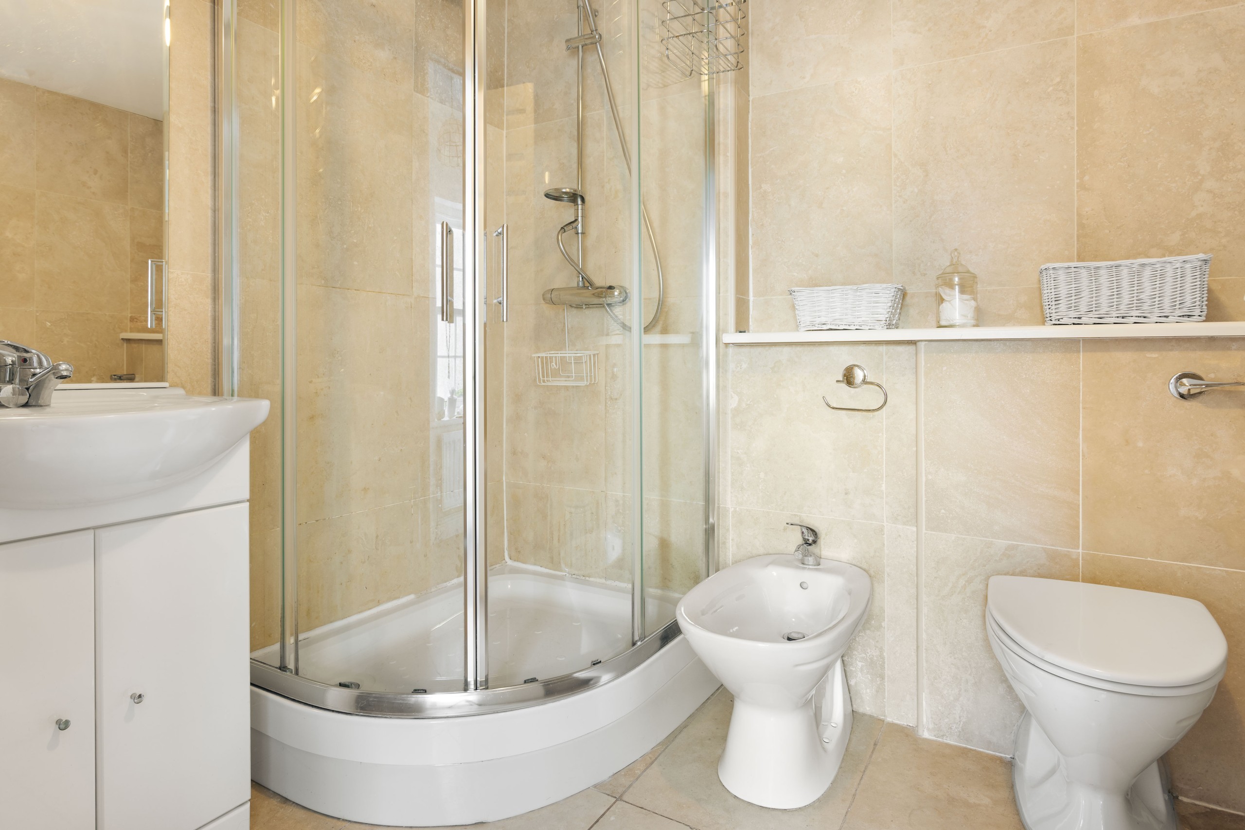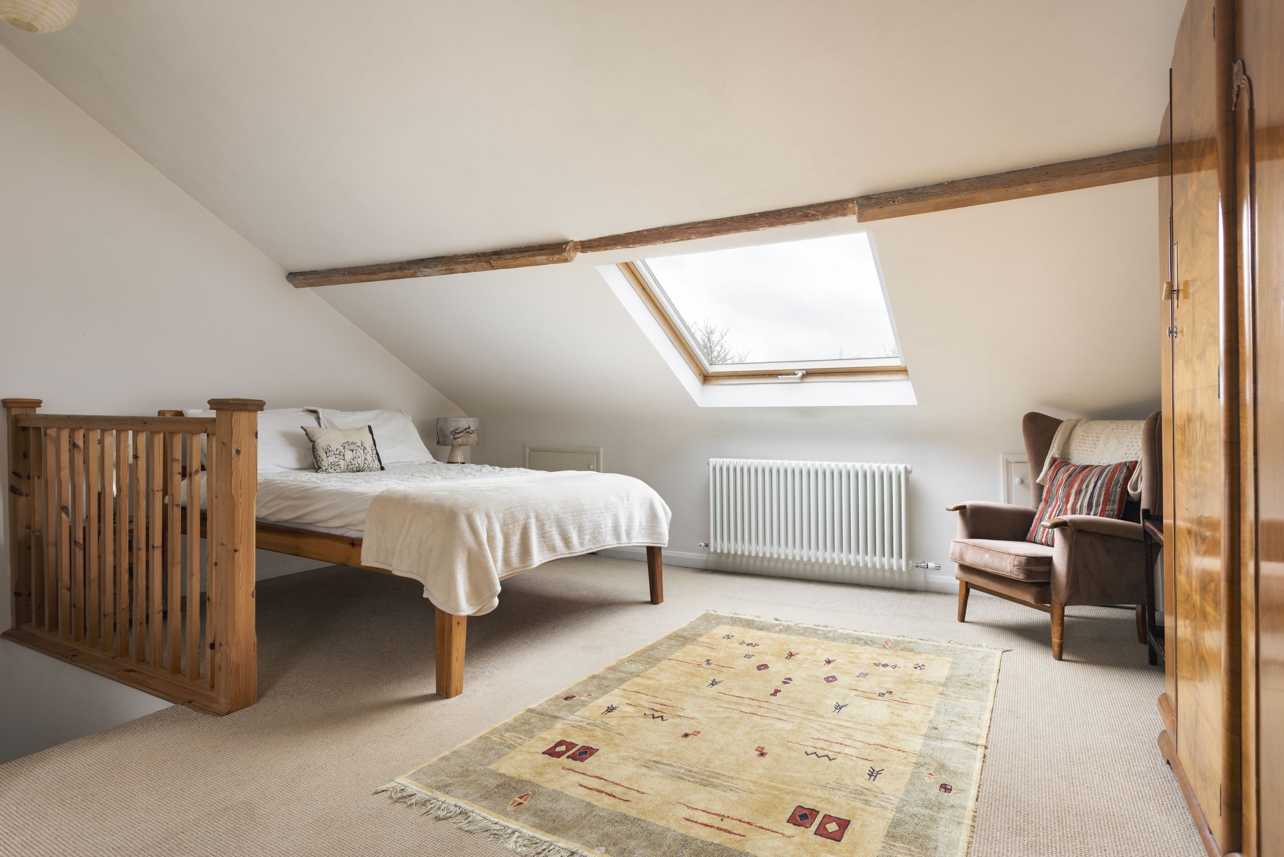 The house features four generous double bedrooms, two bathrooms, and an extra downstairs WC. The loft bedroom feels like its own private studio suite, complete with an en suite shower room for added comfort and privacy. The main family bathroom serves the Sweetpea, Acorn, and Crimson rooms, and offers a setup with a bathtub, separate walk in shower, and a bidet.