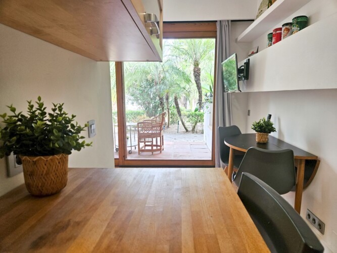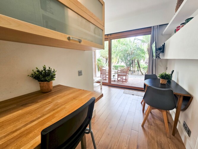 Beautiful apartment for 4 people, with one bedroom and a sofa bed in the living room. It features a terrace with access to the garden. A very relaxing holiday atmosphere, located within a residential complex with a swimming pool.