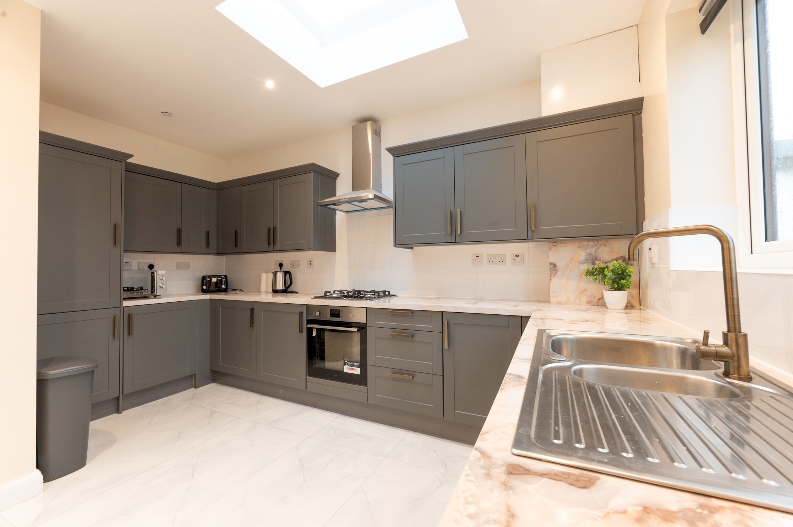 The Kitchen – with all amenities and appliances you may need to cook a delicious meal. This includes amenities like the oven, gas hob, kettle, microwave, toaster, fridge freezer and much more.