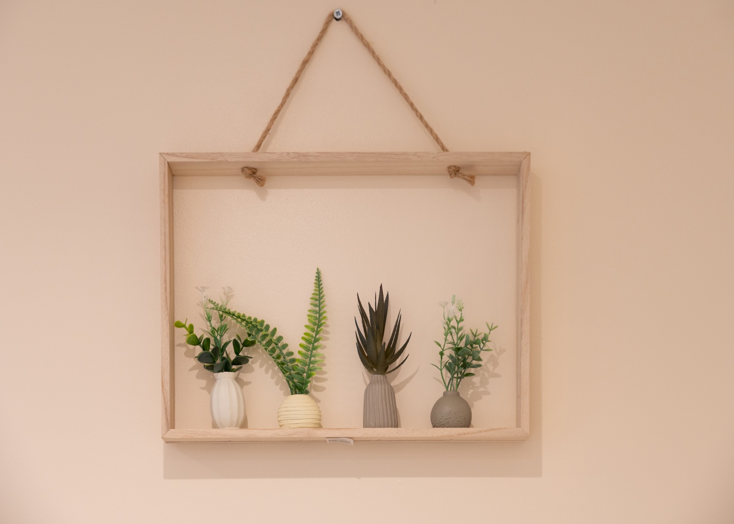Bedroom 2, has a small double bed, bedside table and an open rail hanging.