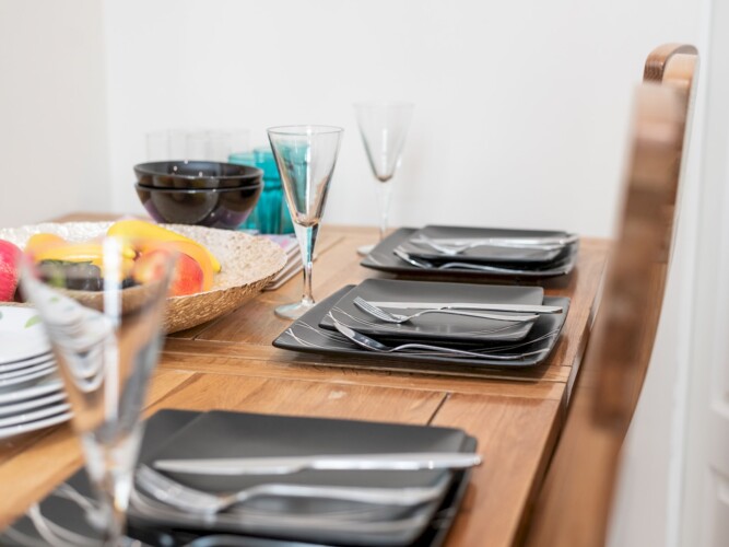 Kitchen and dining area – dining table for 6 and all the necessary kitchen amenities.