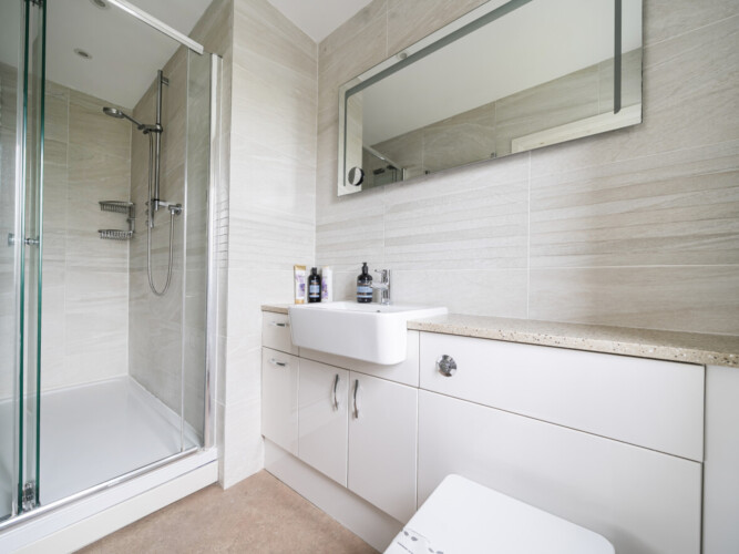 Contemporary shower room with sleek finishes, offering a refreshing space to start or end your day.