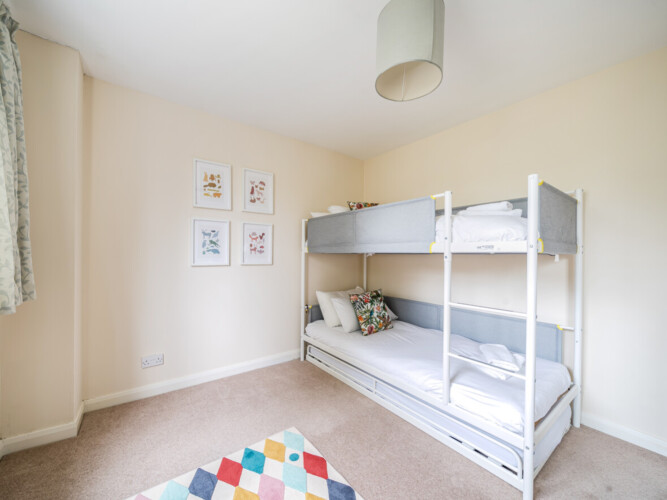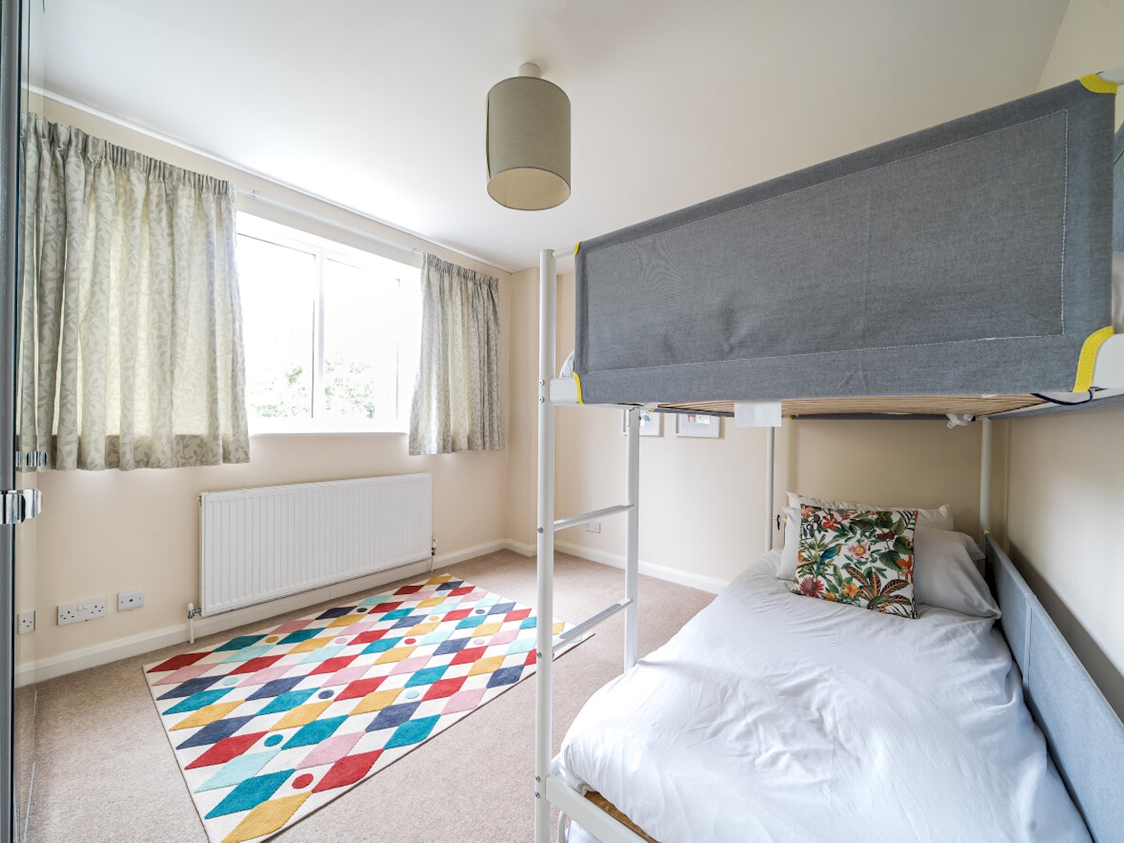 A cheerful bedroom with bunk beds—perfect for kids or friends. Bright and playful, it offers a cozy space for a good night’s sleep.