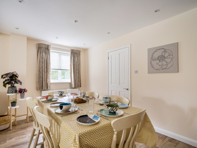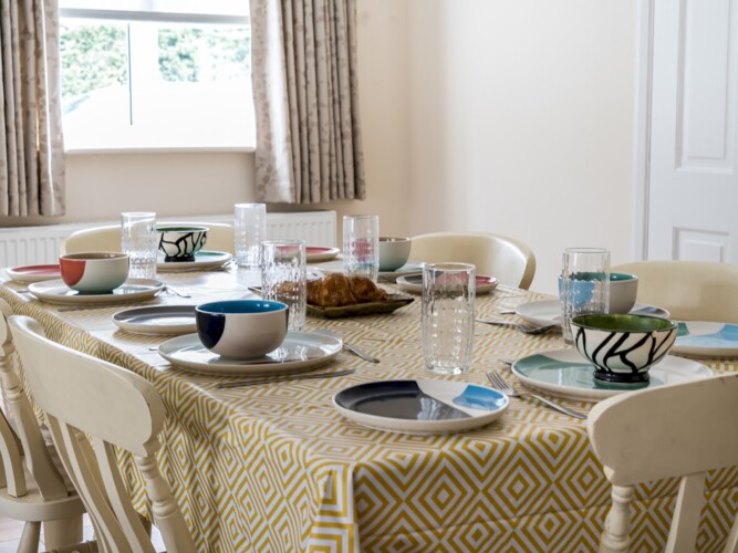 Enjoy meals around the large dining table, set for gatherings with family and friends. This open-plan dining space is perfect for shared meals, games, or long chats that stretch into the evening. All cutlery, glasses and plates provided for convenience