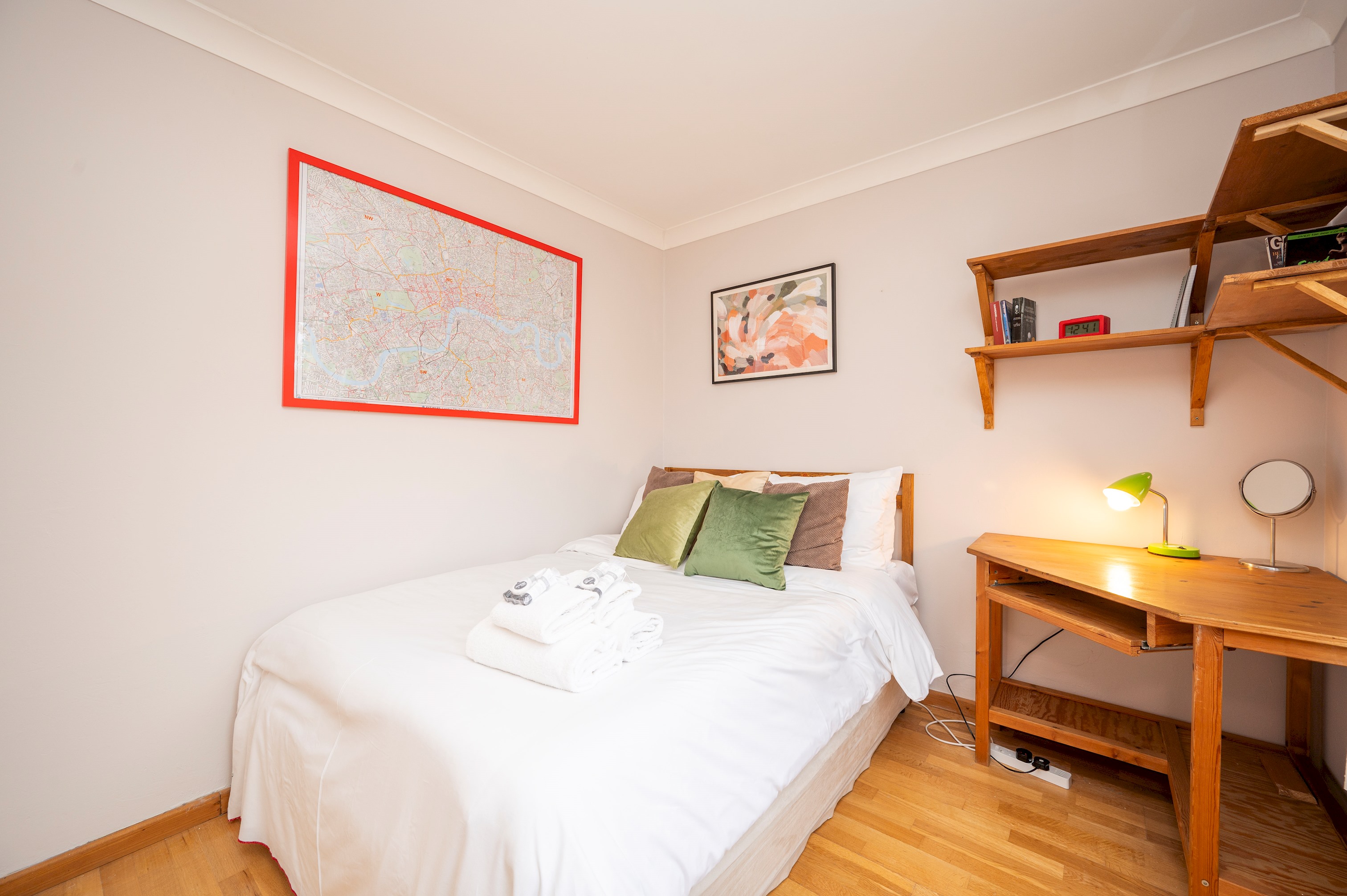 Located in a quiet North London neighborhood, this home offers quick and easy transport links to Camden, Kings Cross, and beyond. Camden Market, lively pubs, and music venues are just a short bus or Tube ride away. King’s Cross St. Pancras, with direct trains across the UK and Europe, is also easily accessible. For those looking for a peaceful escape, Hampstead Heath is a short journey away, offering nature trails and picnic spots.