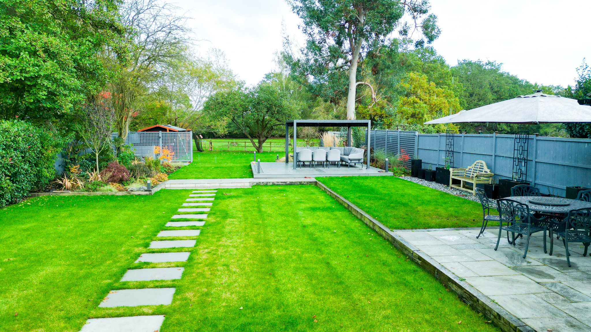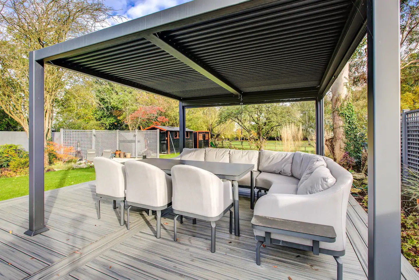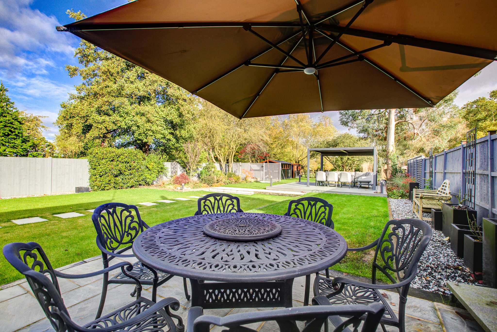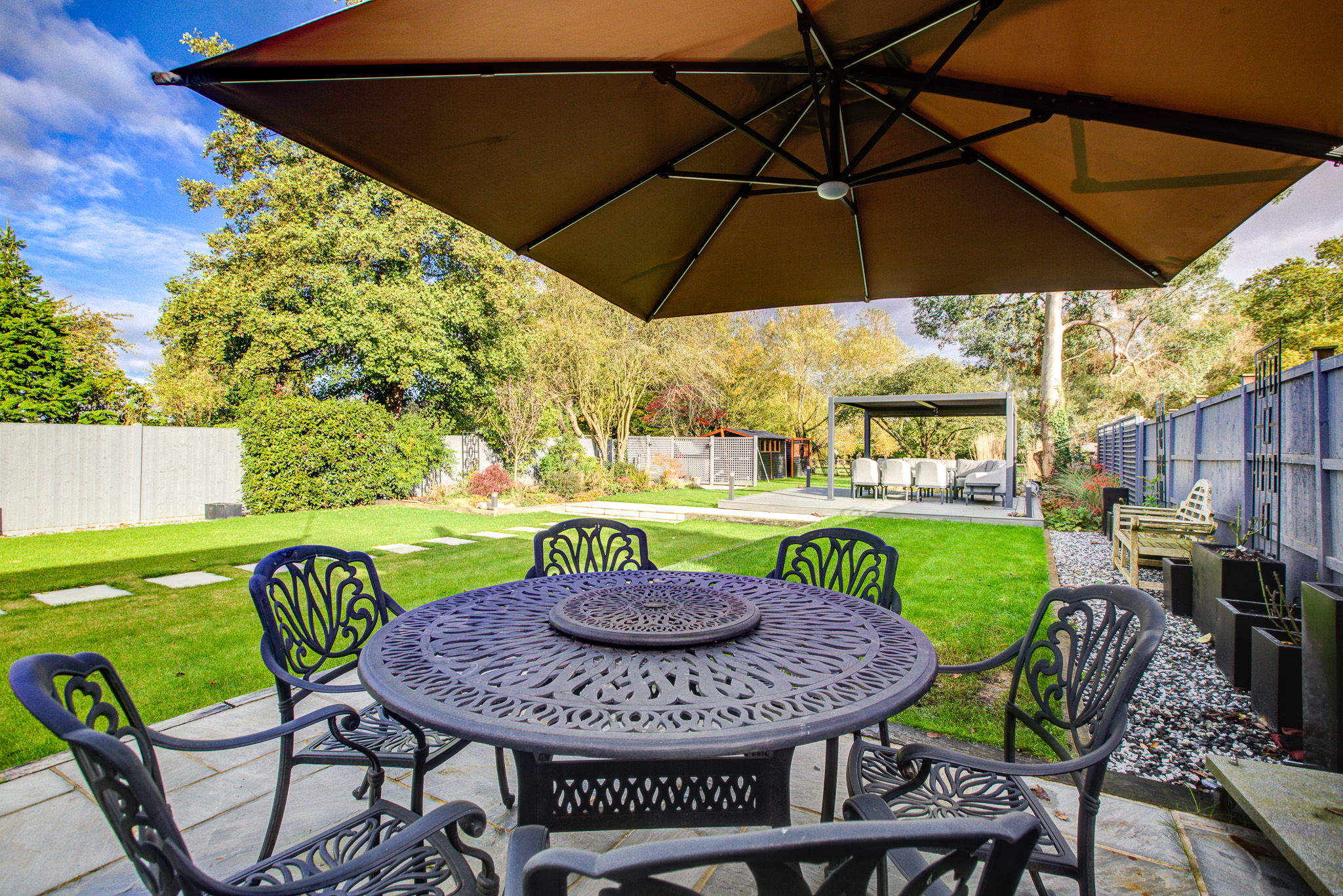 Gorgeous Garden: Step outside to discover a vast garden, perfect for outdoor activities or simply unwinding. The outdoor seating area is ideal for morning coffee or evening drinks, and the lawn offers plenty of space for kids to play.