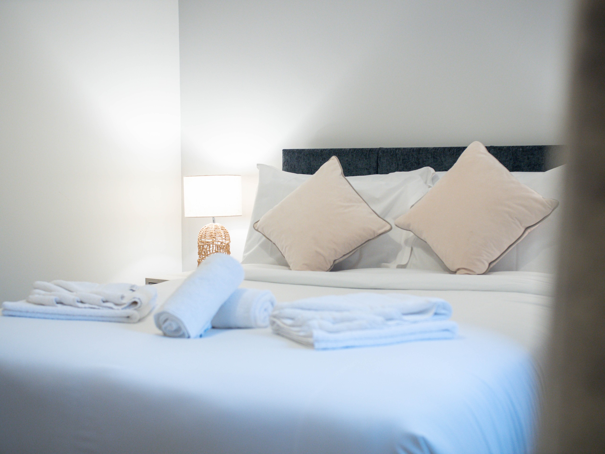 It is professionally cleaned and the linen/ towels are removed from the property after each stay and replaced with freshly laundered supplies. The property is set up to offer remote access with easy self check in meaning that no direct contact with anyone needed. We also offer 24/7 guest support should you need any support or assistance during your stay.